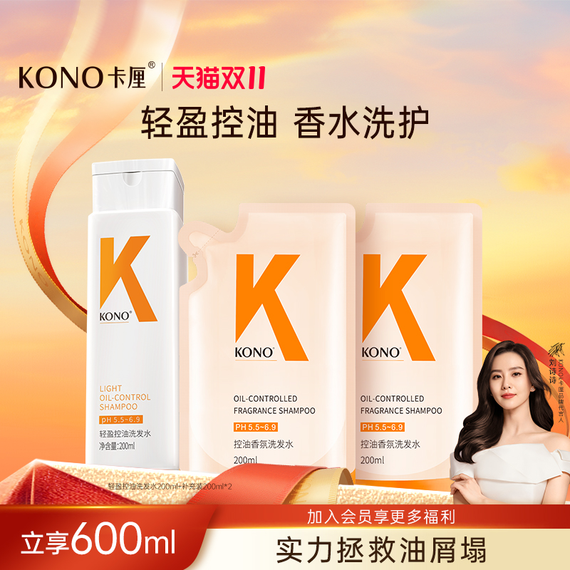 商品名称:KONO卡厘控油清洁护发去屑蓬松洗发水洗发露旅行套装800ml