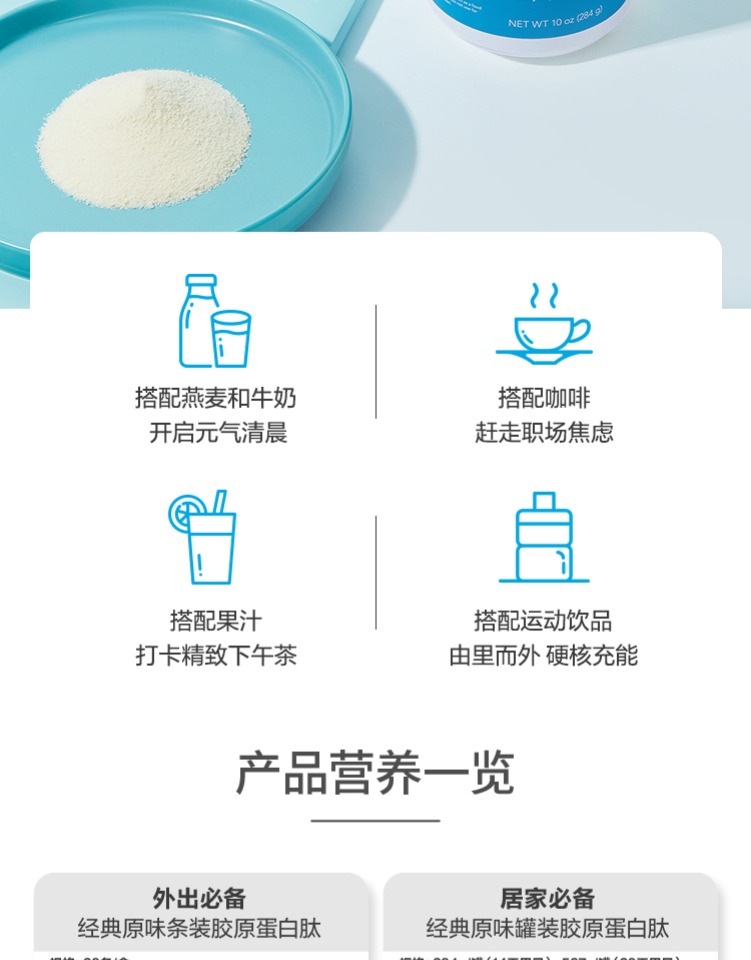 商品介绍:晁然推荐VP雀巢大蓝罐胶原蛋白肽粉567