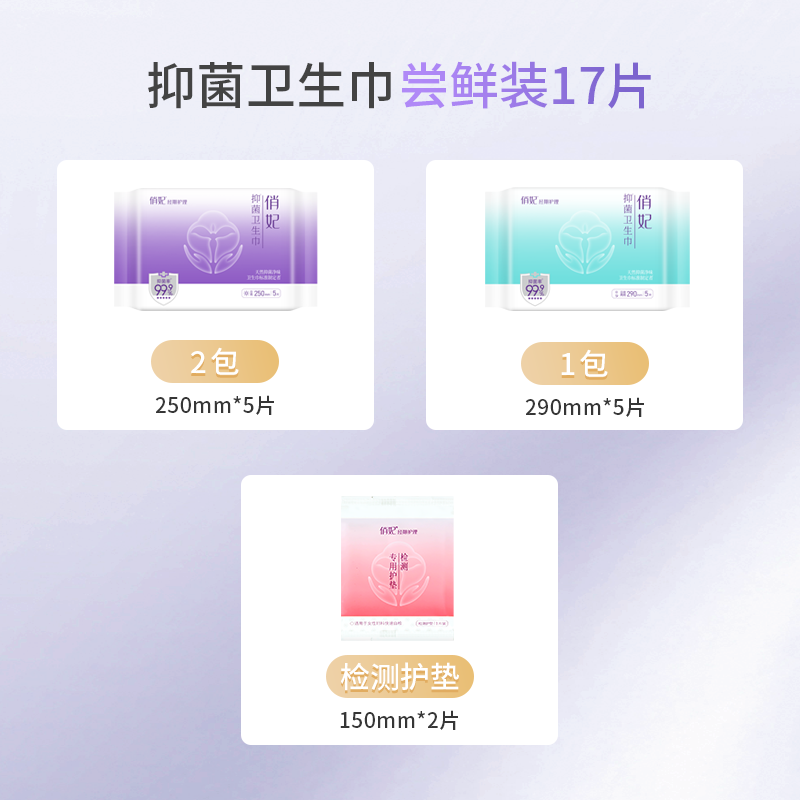 商品简介:【2包日用+1包夜用+2片检测护垫】竹纤维安心面层,无添加不漂白更健康。天然抑菌99%,舒适无感,数十万纳米透气孔,轻薄透气不闷热;医护级7层防护,自在安心。