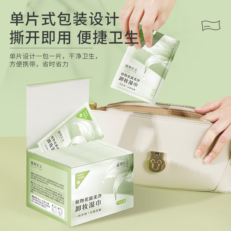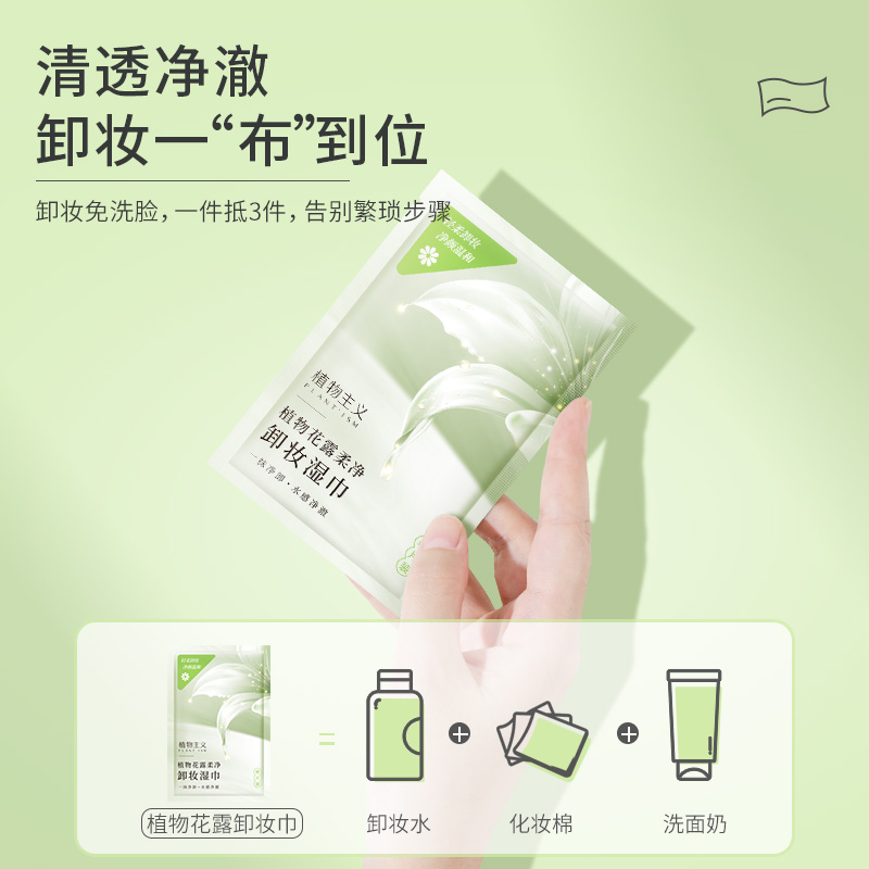 商品名称:植物主义卸妆湿巾一次性便携式官方旗舰店正品深层清洁眼唇卸妆巾
