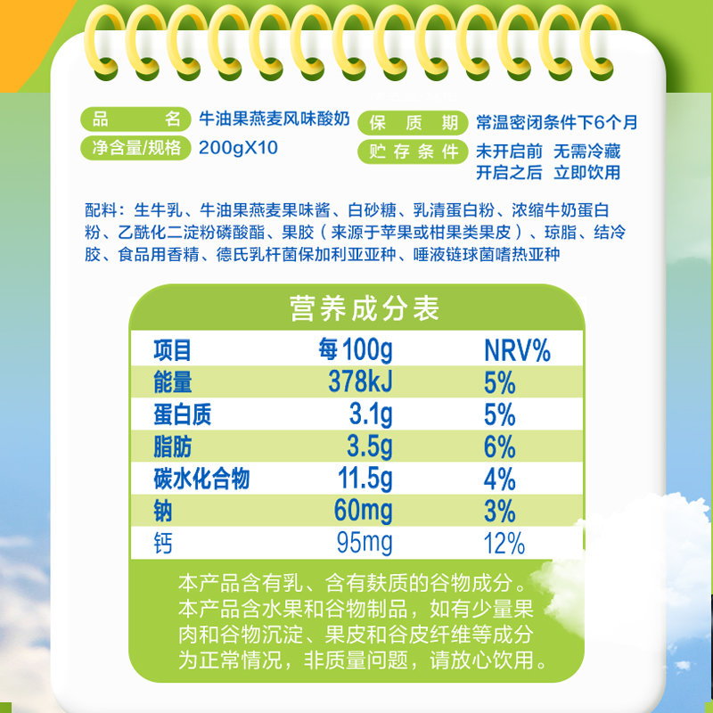 商品名称:伊利安慕希牛油果燕麦风味酸奶200g*10瓶*2箱学生营养早餐搭档