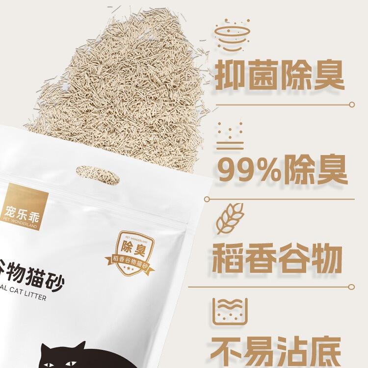 商品简介:除臭猫砂,植物谷物造,奶香宜人!吸水无尘,健康守护!可冲马桶!