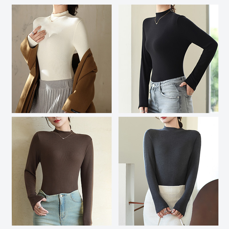 商品名称:半高领打底衫女2024新款内搭修身加厚保暖秋衣黑白色百搭长袖上衣