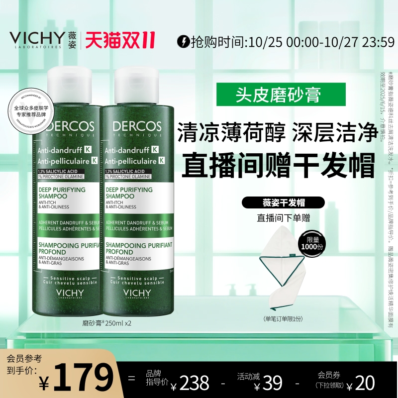 商品名称:【现货速达】薇姿洗发水DERCOS深层清洁磨砂膏