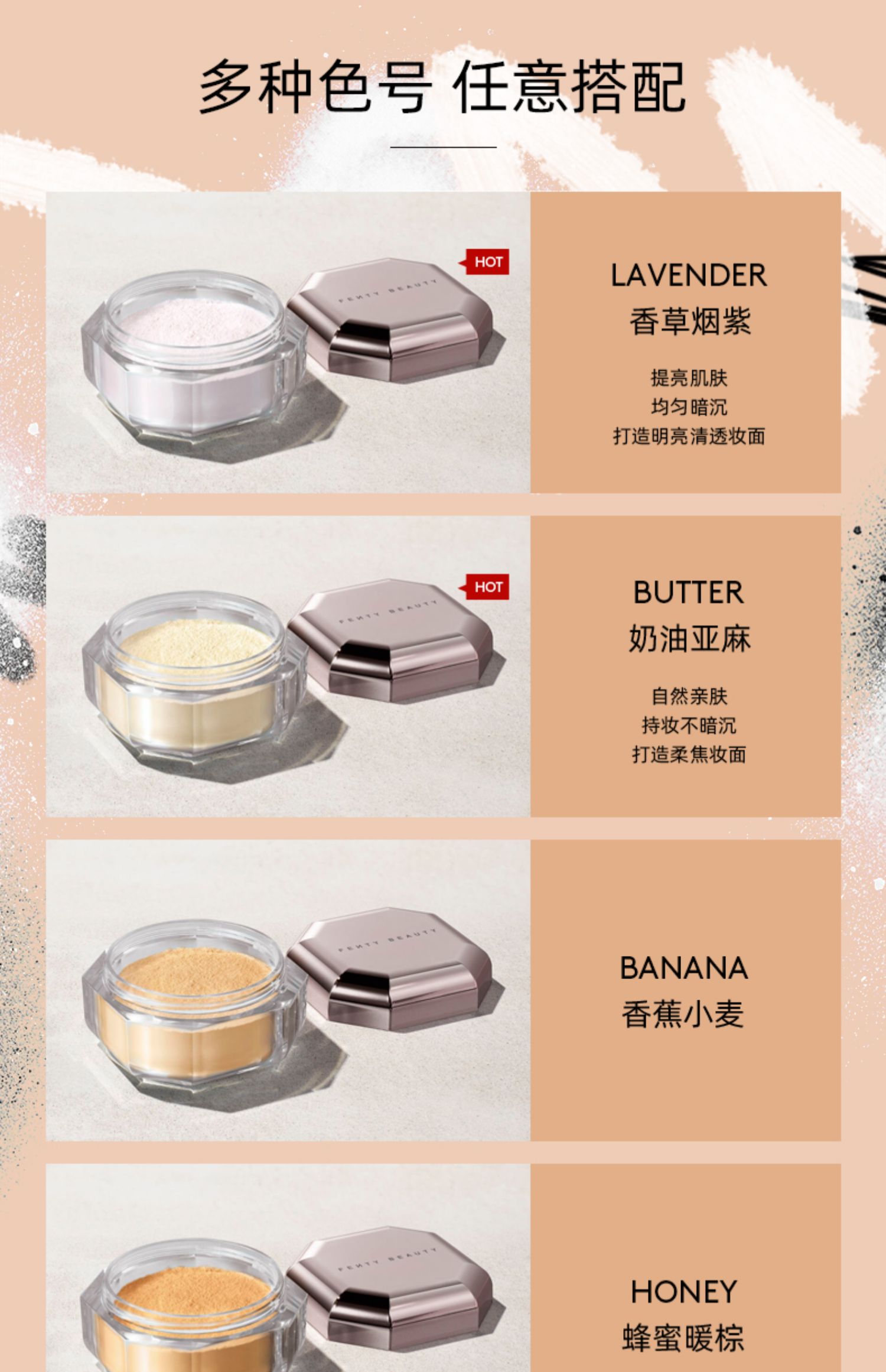商品介绍:FentyBeauty蕾哈娜无瑕定妆蜜粉散粉