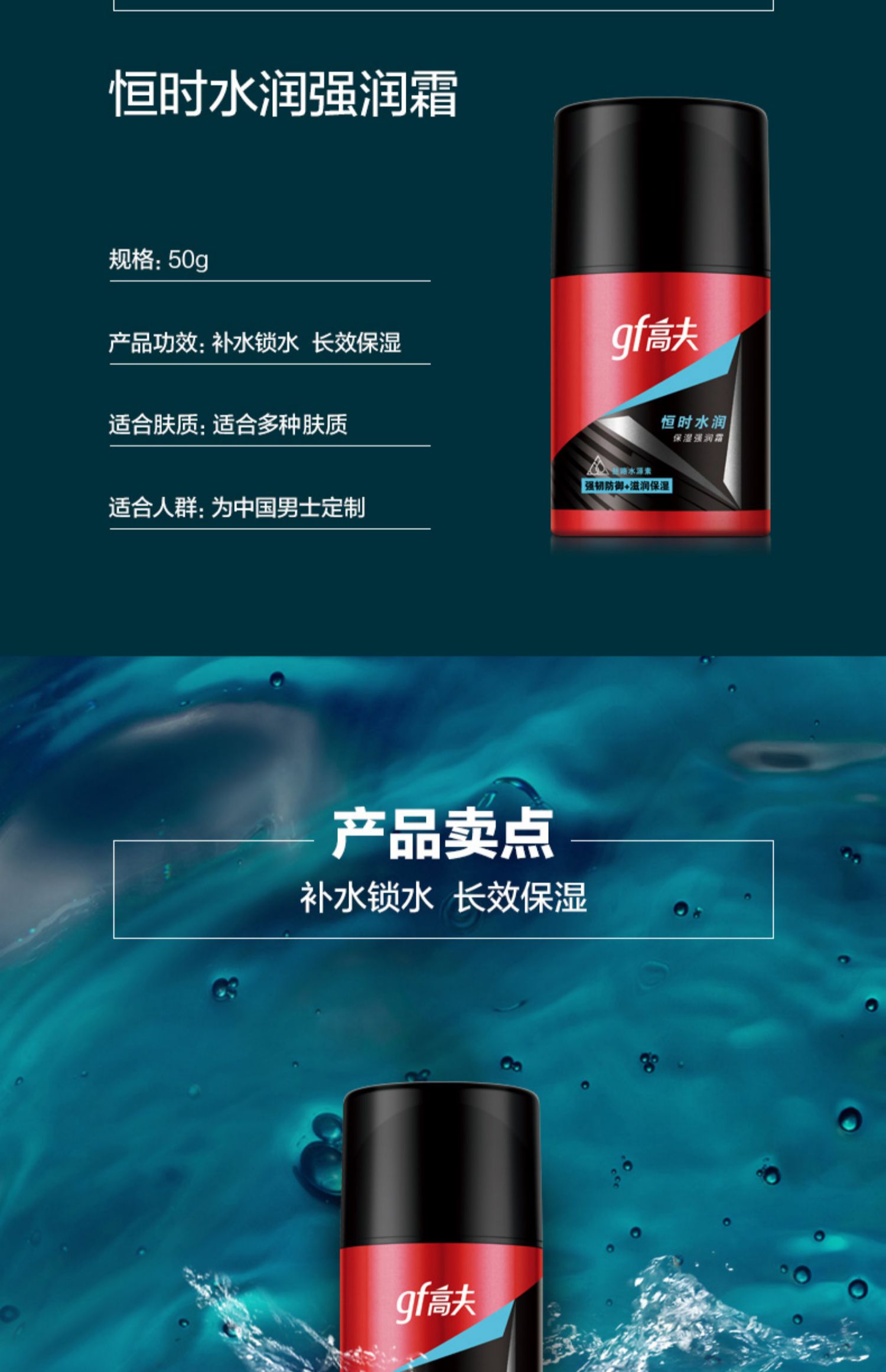 商品介绍:高夫恒时强润霜补水面霜50g*2