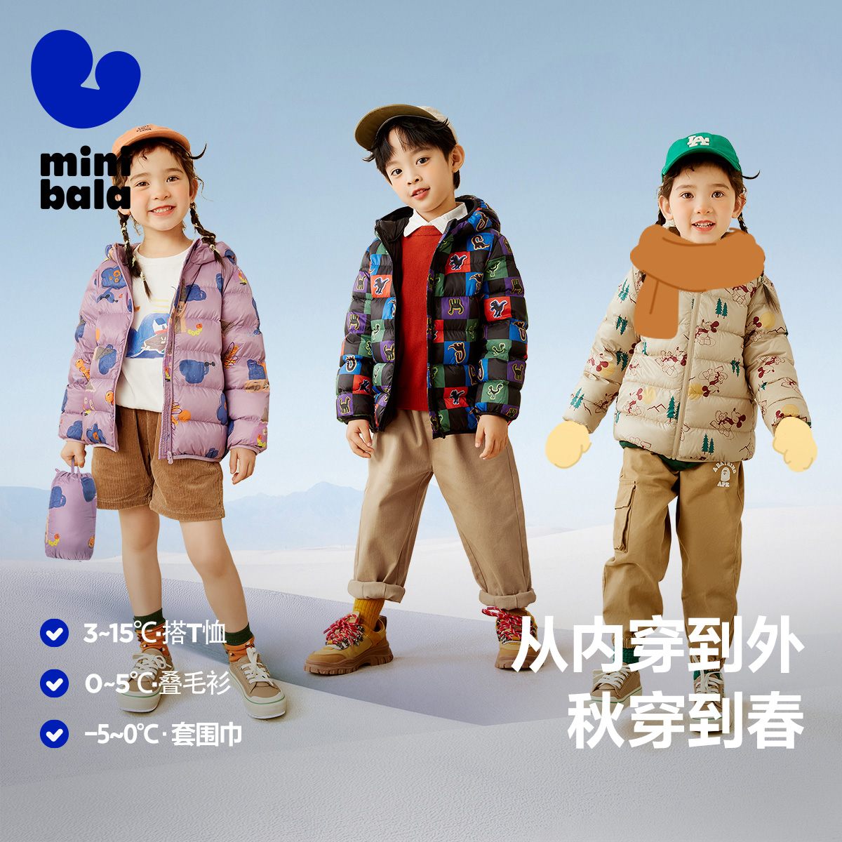 迷你巴拉巴拉冬季新款男女童羽绒服,宝宝轻暖连帽保暖外出羽绒外套