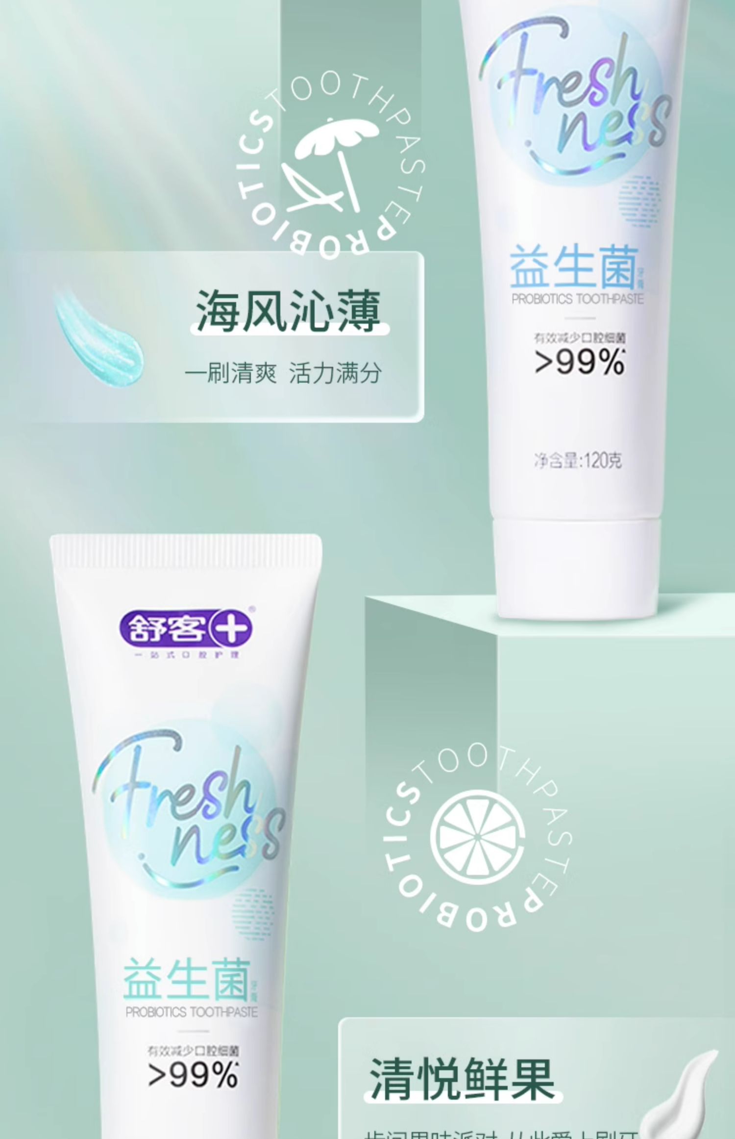 商品名称:【双11预售】舒客官方旗舰店益生菌牙膏女生清新口气清洁口腔成人