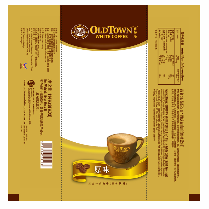 商品介绍:马来西亚旧街场白咖啡原味38g×3条