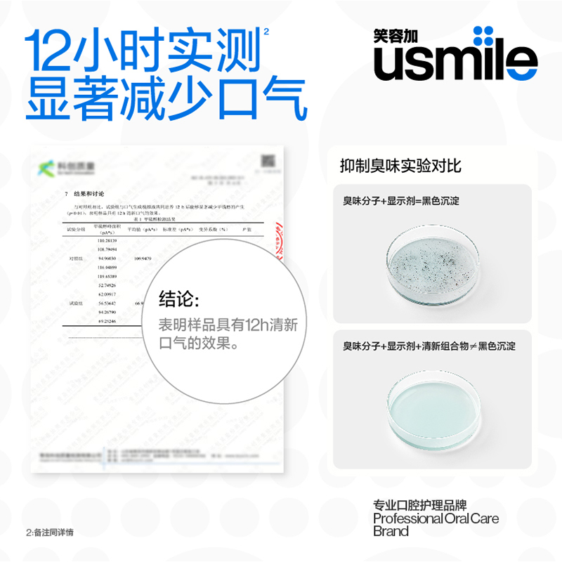 商品简介:【定金10元,尾款凑单付73.2,定金+尾款实付83.2!+赠漱口水20颗】usmile植萃养护漱口水,抑制99%有害菌,有效减少口腔异味,0酒精不辣口,随时一颗,清新12小时!