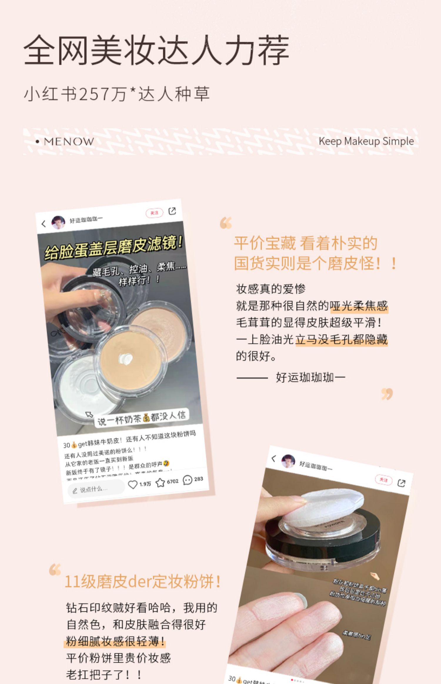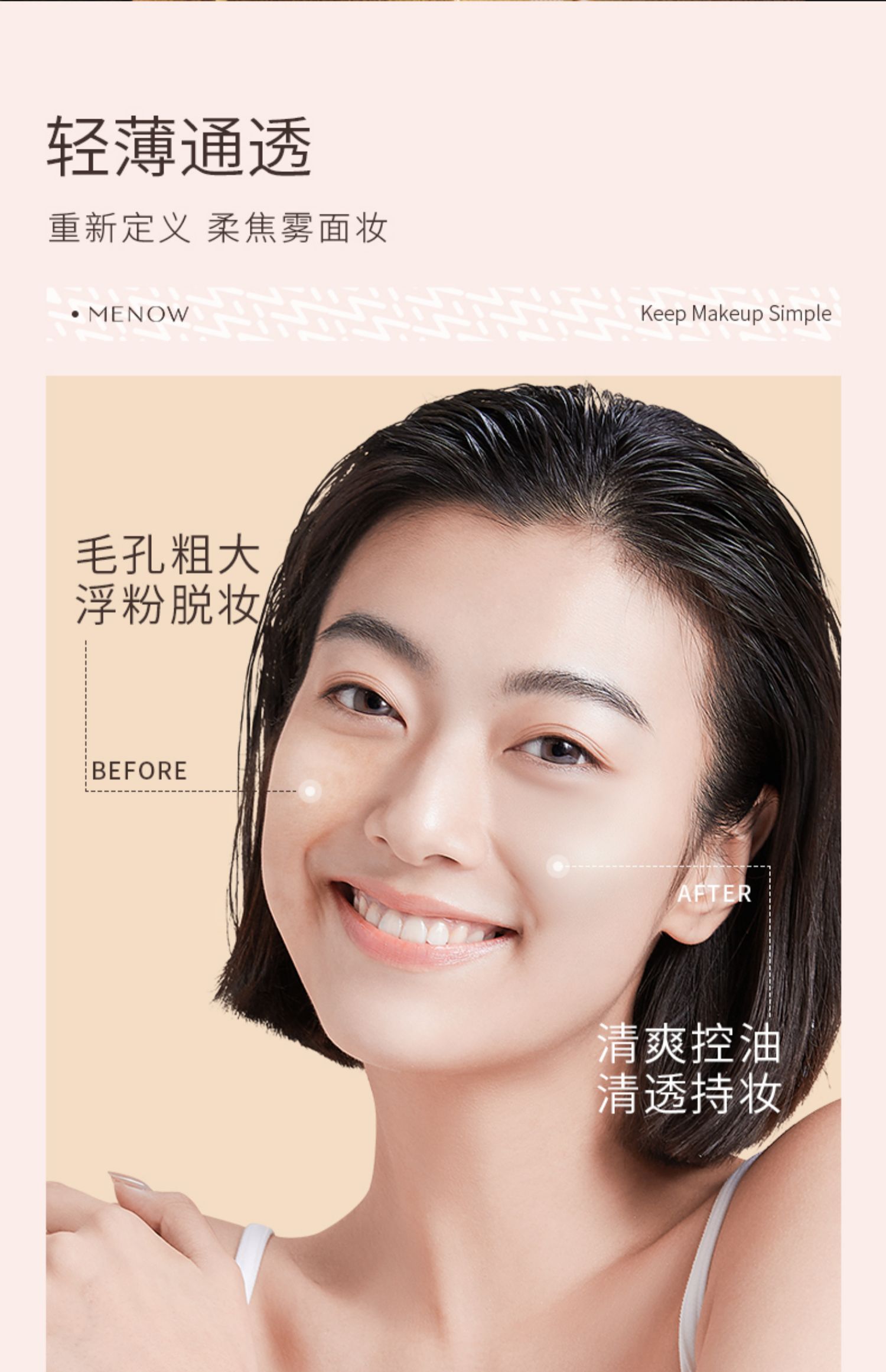 商品简介:【赠眉笔*1+粉扑*2,到手5件】目前平价粉饼,我只服美诺,隐形毛孔,一秒磨皮,微米级专利粉体,美颜一步搞定!自带柔光感,让肌肤更无暇!【退货运费险】
