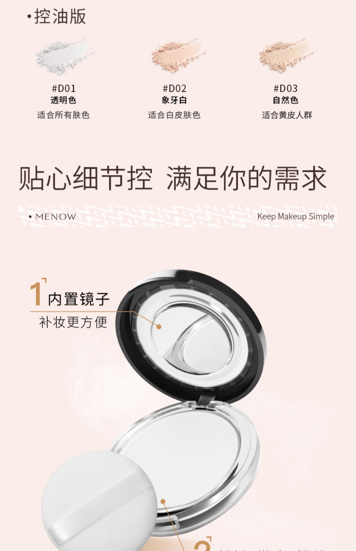 商品介绍:【拍一发五!】美诺定妆粉饼2盒装