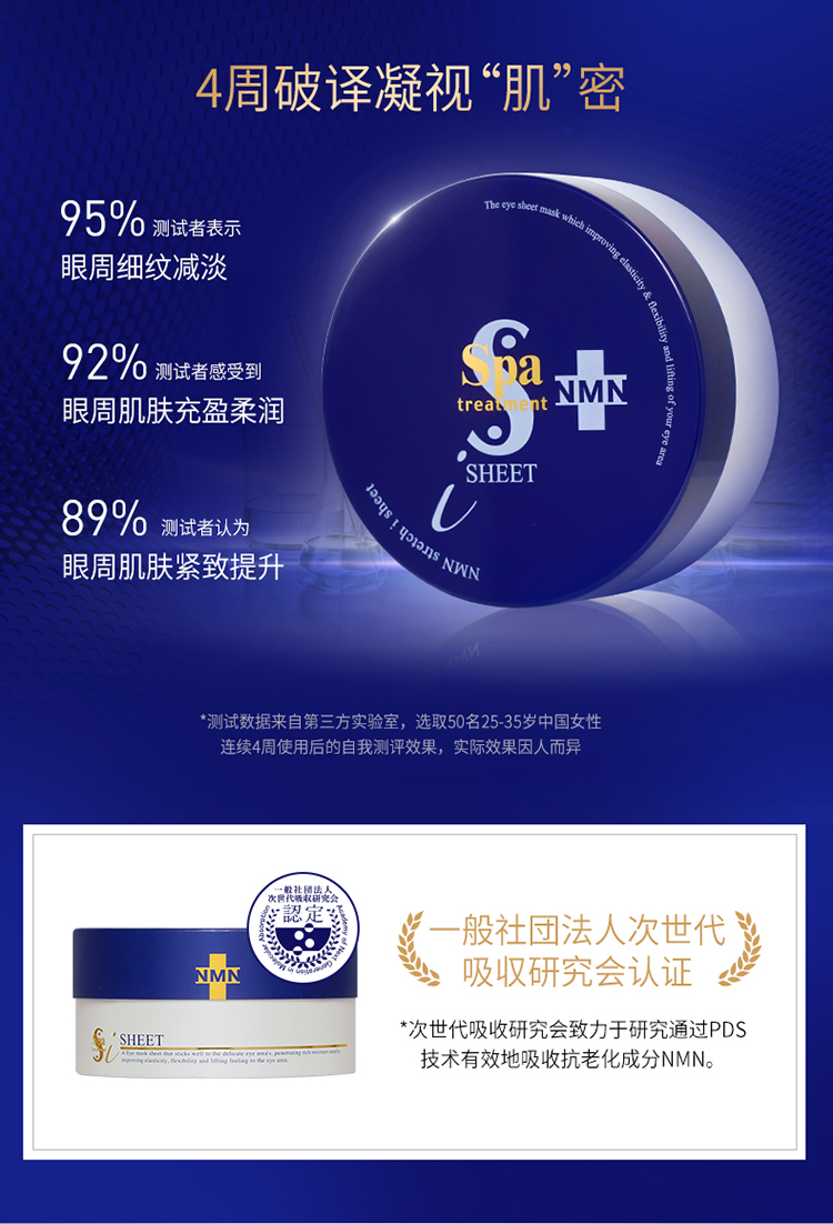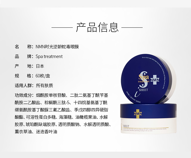 商品名称:【自营】spa蛇毒蓝眼膜60枚 深层淡纹熟龄肌紧塑眼周保湿抗初老