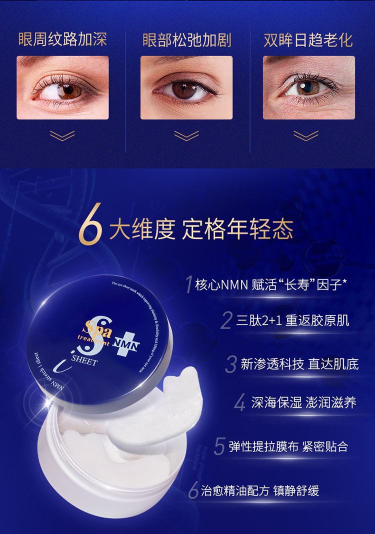 商品介绍:spa蛇毒淡纹保湿蓝眼膜60枚
