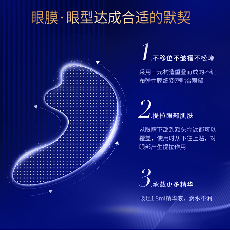 商品简介:领品类券300-50,到手199!88VIP到手更优惠!时光逆龄蛇毒眼膜,不移位不皱褶不松垮,提拉眼部肌肤,承载更多精华,添加海洋活性精粹,整肌成分,给与紧致弹力!