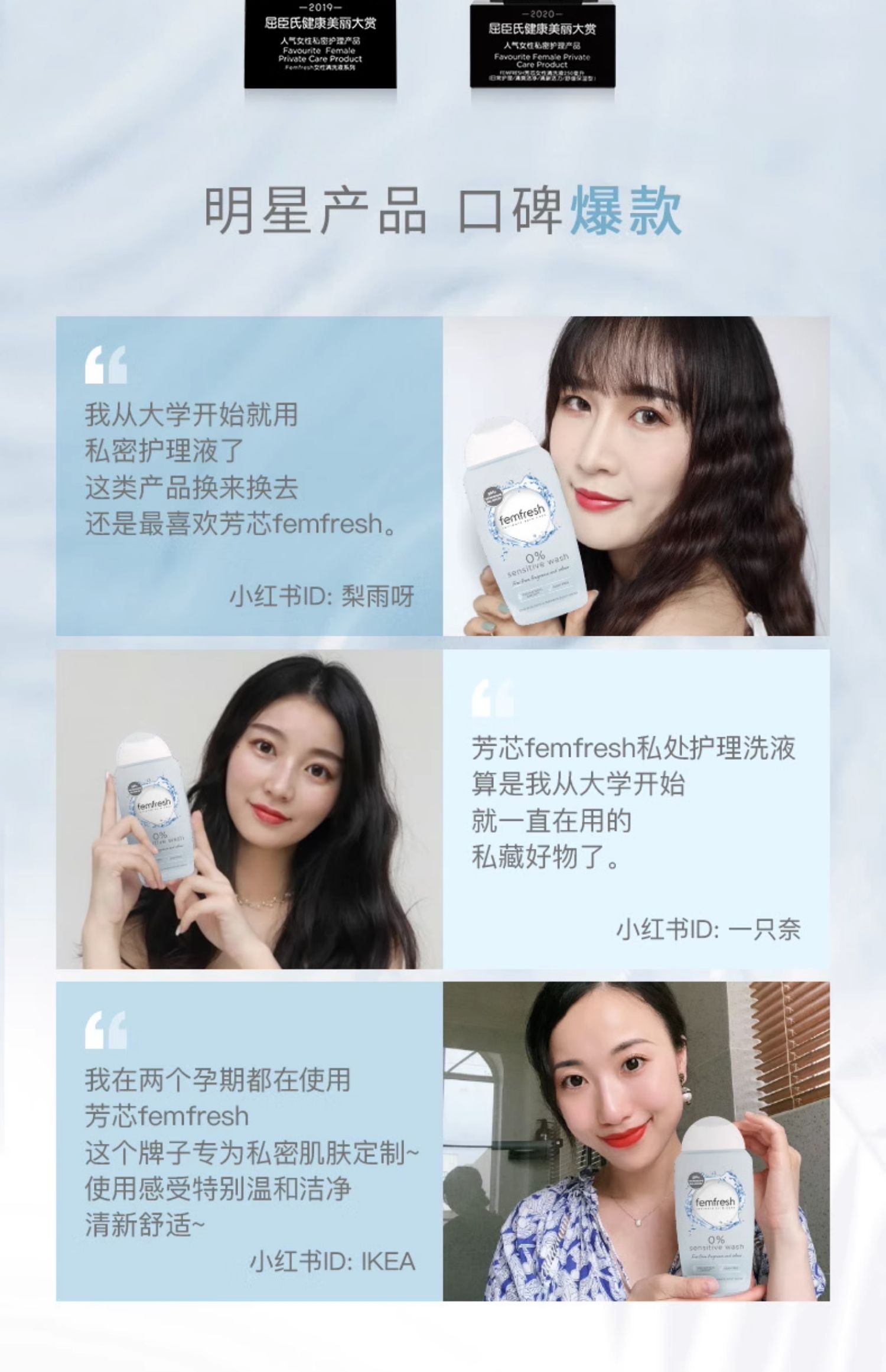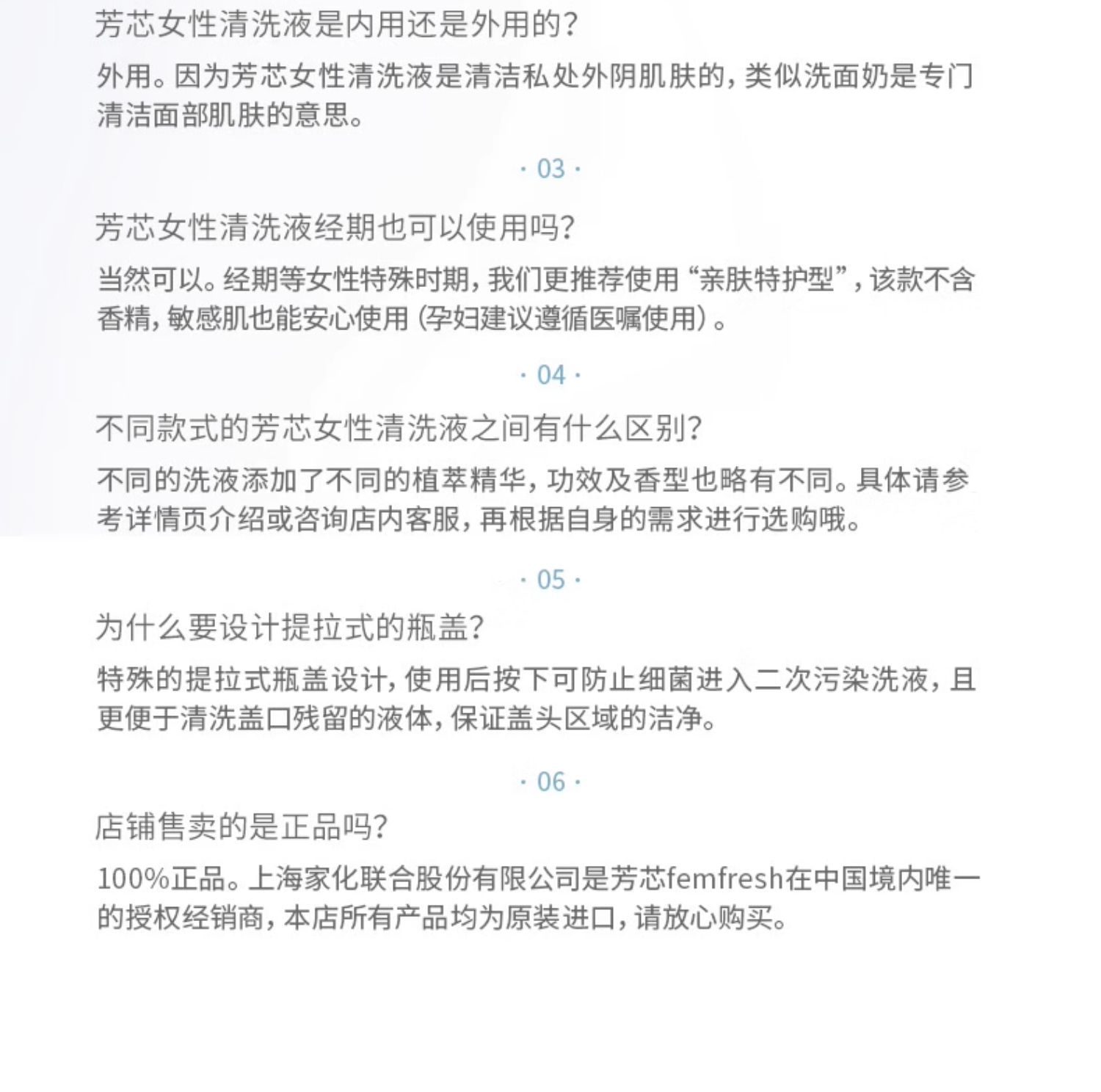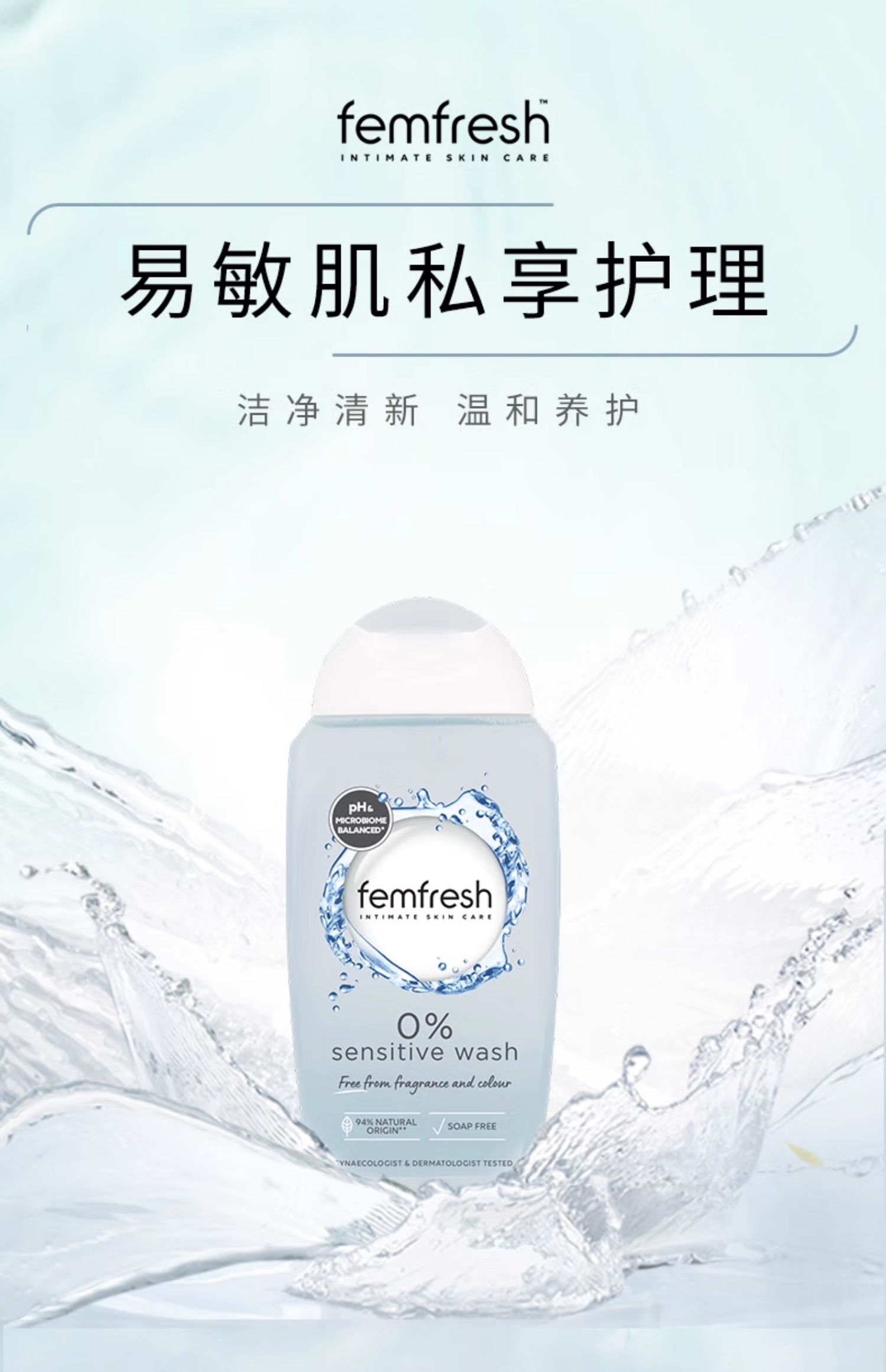 商品名称:英国芳芯femfresh女性私处清洁洗护亲肤特护经期护理敏感肌无香型