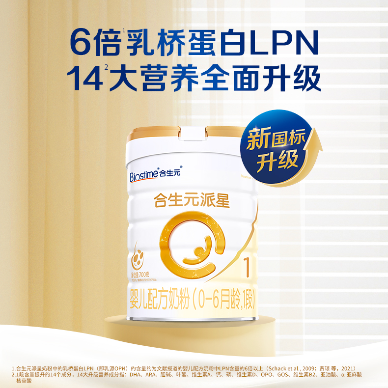 商品介绍:【2罐】合生元派星牛奶粉0-6月1段700g
