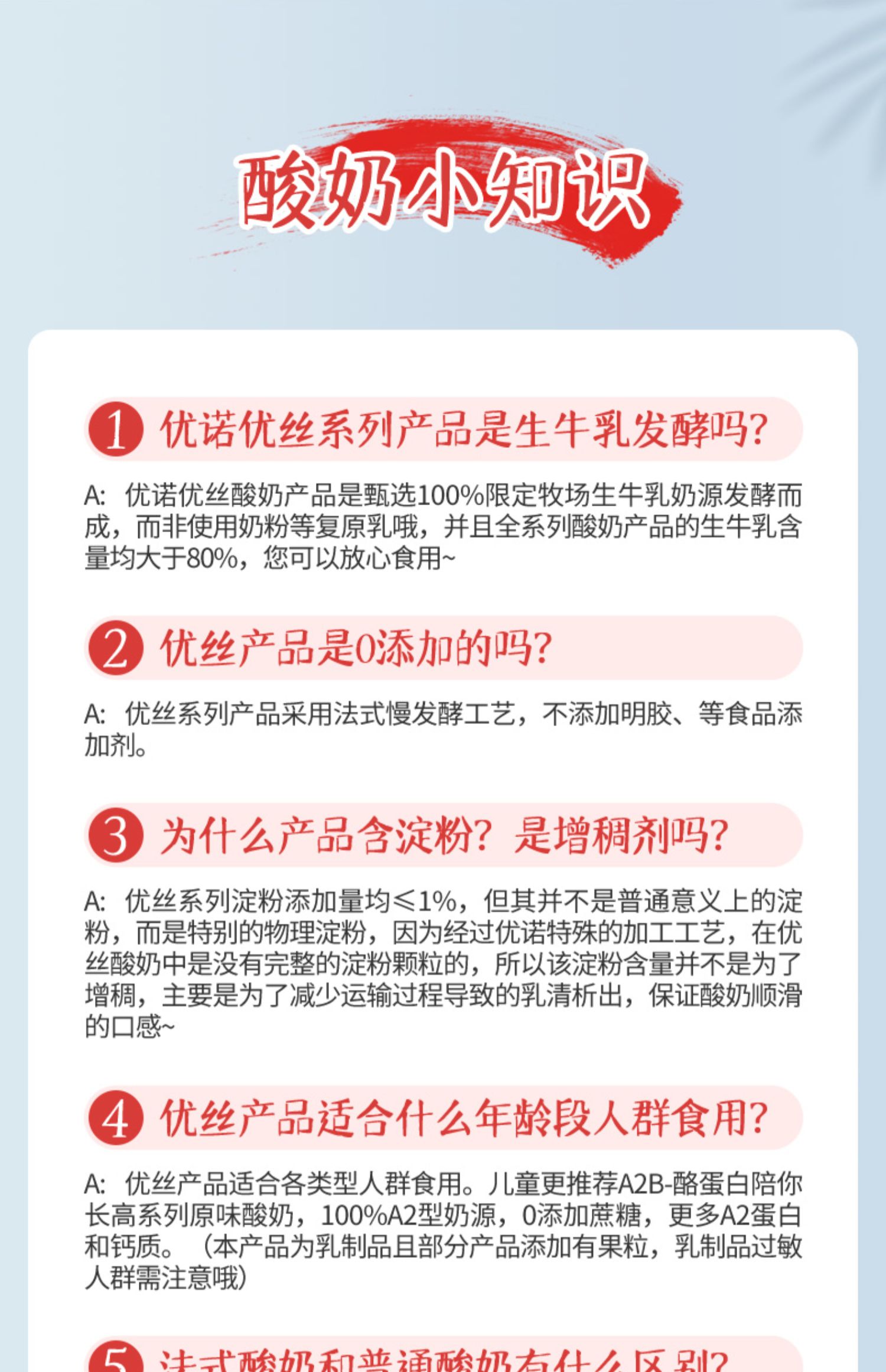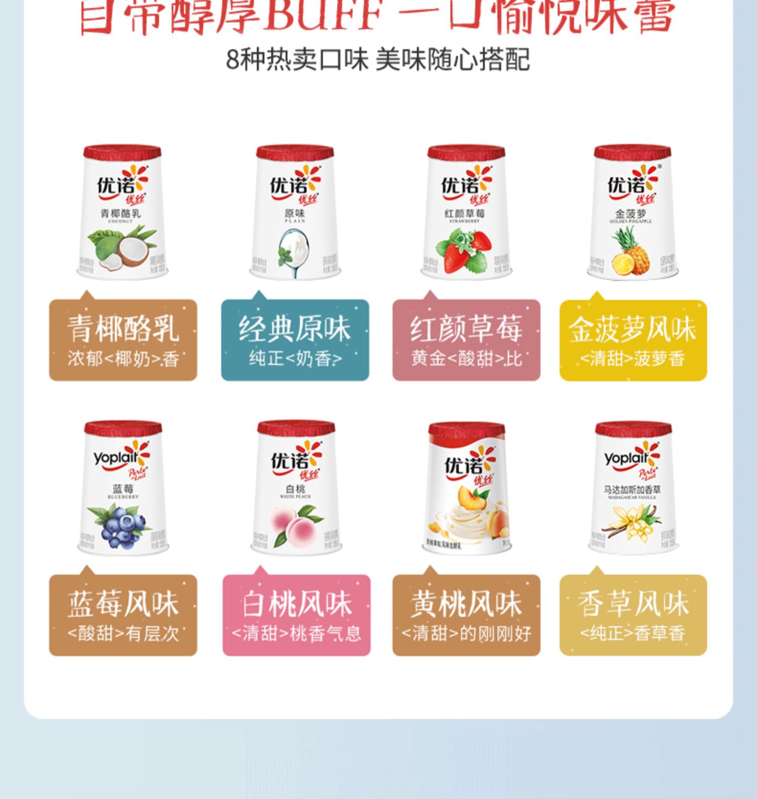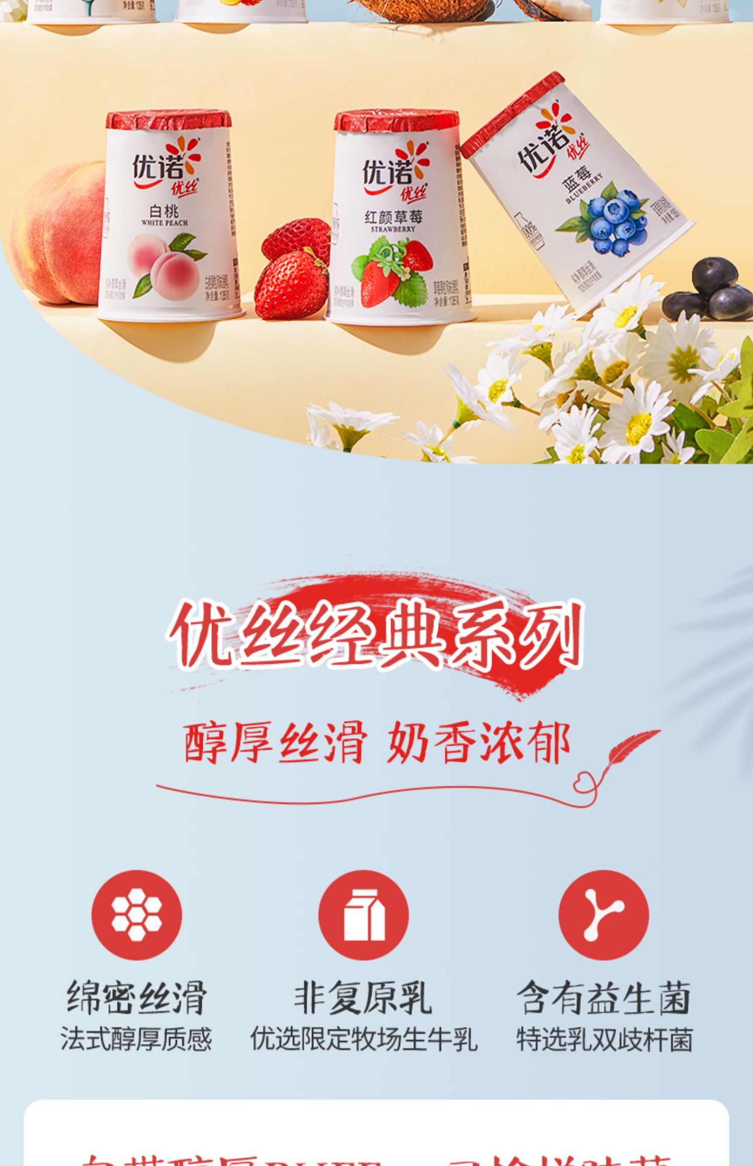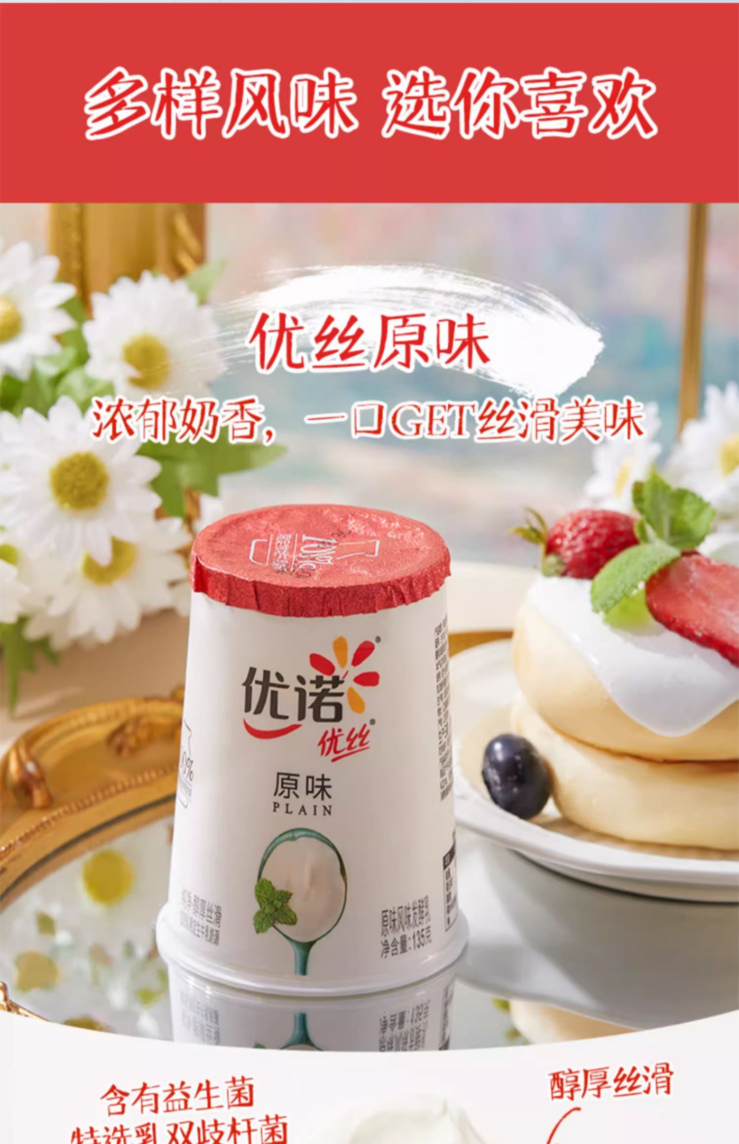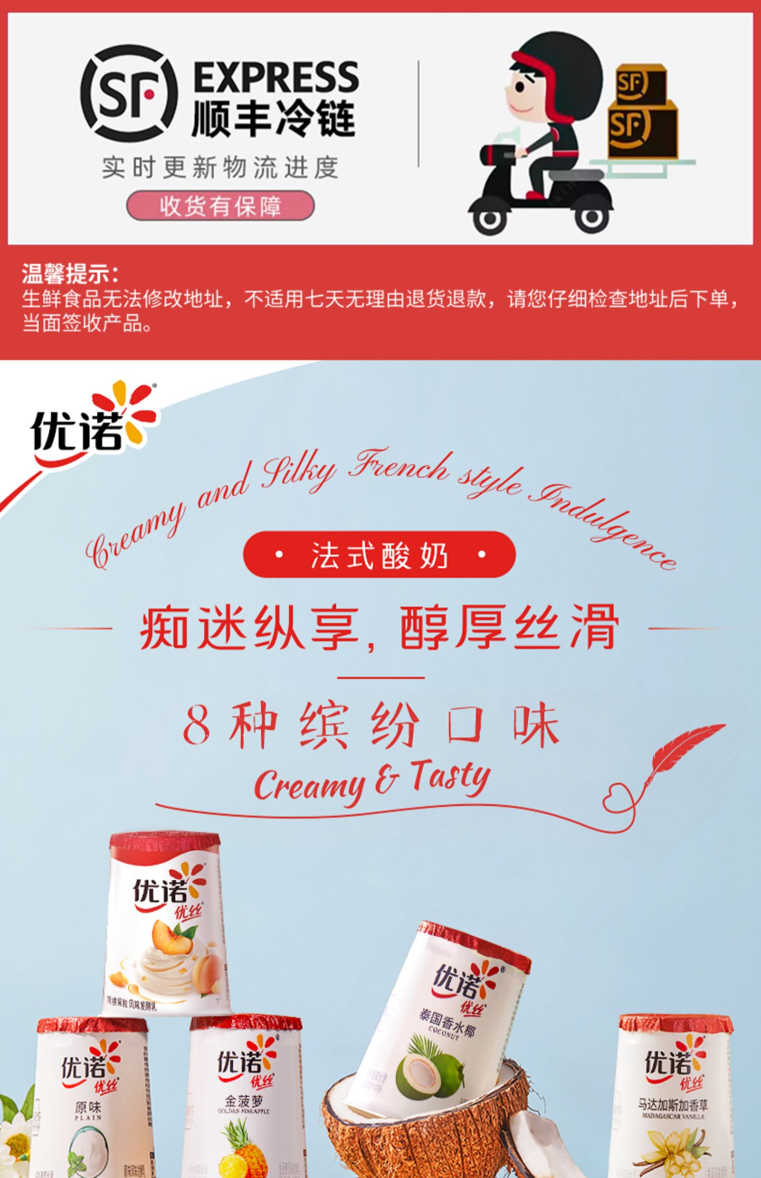 商品介绍:【优丝12杯】优诺法式发酵酸奶多口味早餐奶