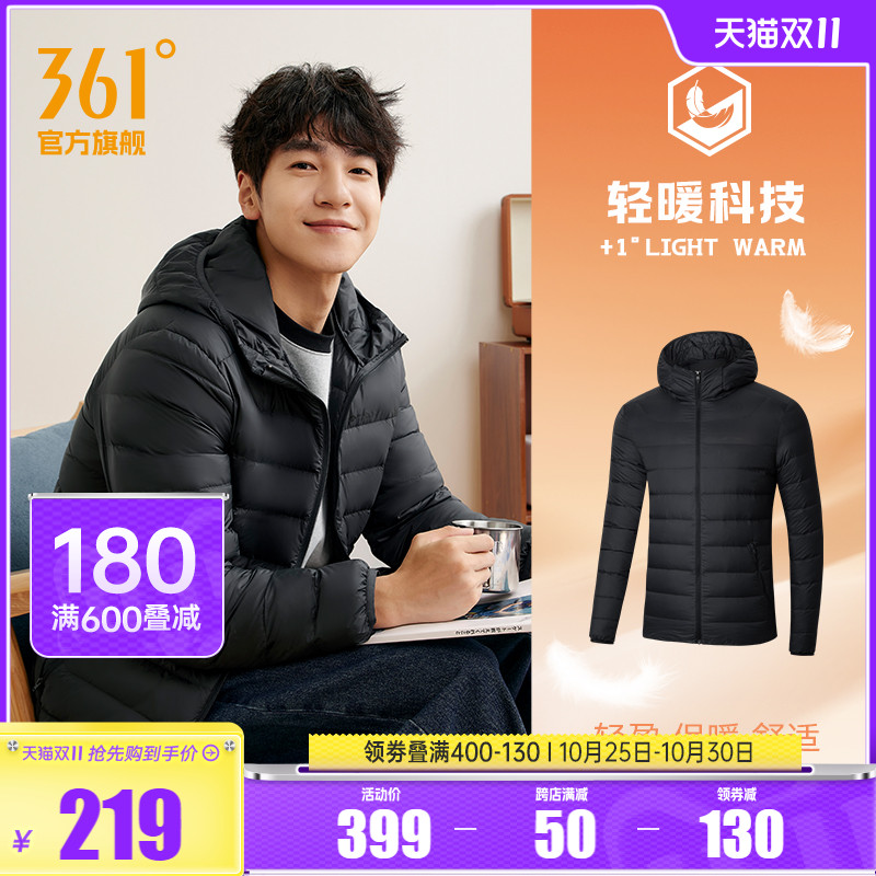 商品简介:361羽绒服男2024冬季保暖超轻羽绒服男士连帽防风休闲运动服外套。
