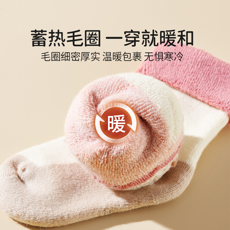 商品简介:19.9/3双!宝宝袜子秋冬加厚新生儿0-3月保暖毛圈袜婴儿无骨袜女童中筒棉袜