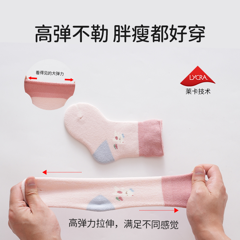 商品名称:宝宝袜子秋冬加厚新生儿0-3月保暖毛圈袜婴儿无骨袜女童中筒棉袜
