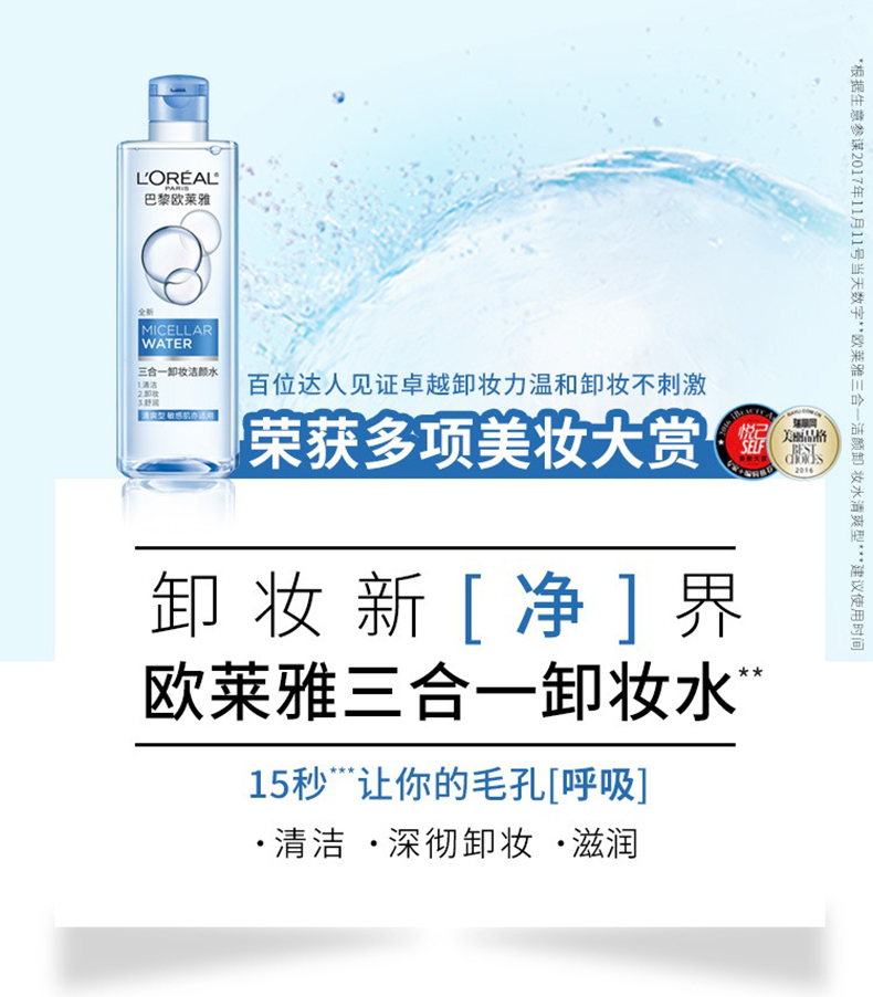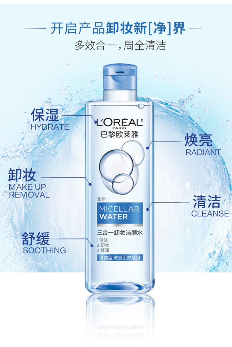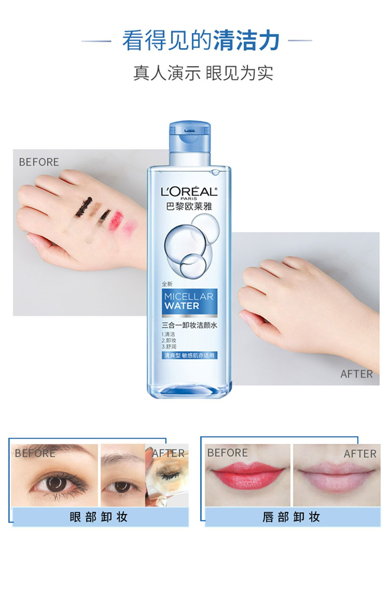 商品介绍:欧莱雅三合一卸妆水卸妆液