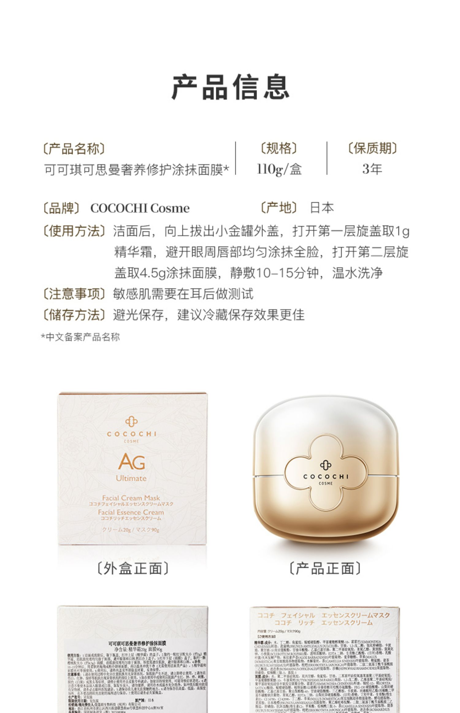 商品名称:【双11抢购】cocochi第二代AG抗糖小金罐全新升级新奢养修护面膜