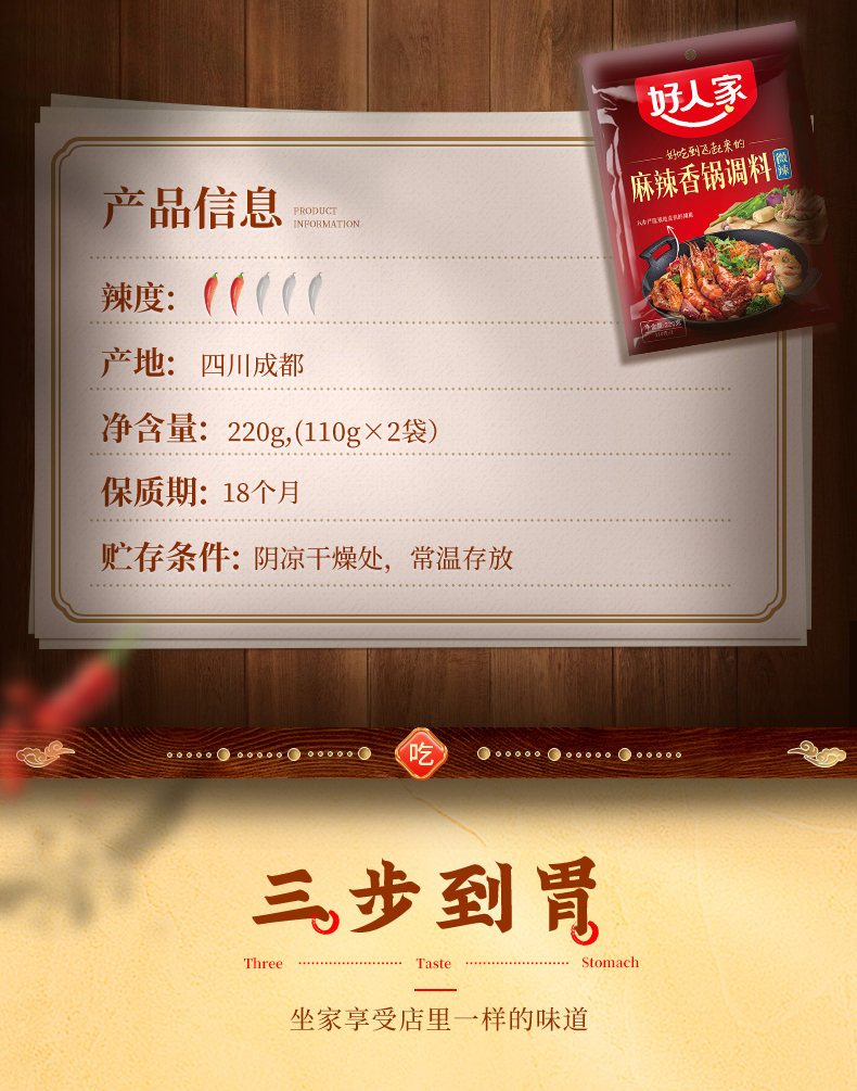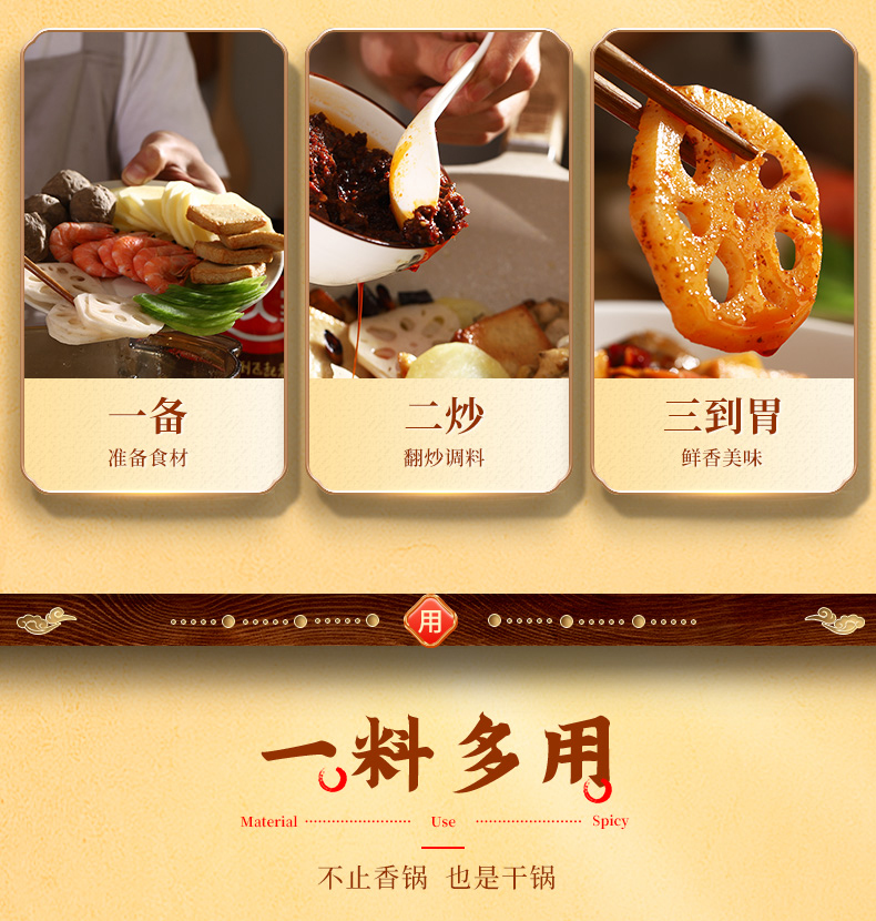 商品简介:预售定金10尾款43.5凑单尾款到手33.7!匠心秘制,川味经典,精选上乘辣椒花椒,辣而不燥,不伤胃,一料百搭、小龙虾、麻辣鱼、干锅鸡翅的不二之选,细火慢熬,香力无边~