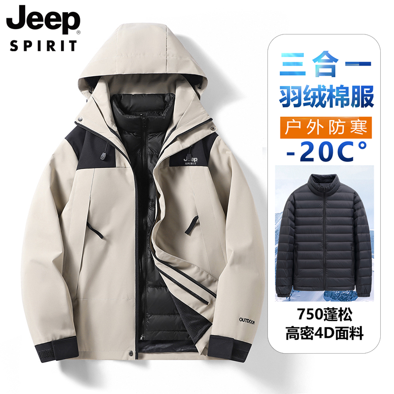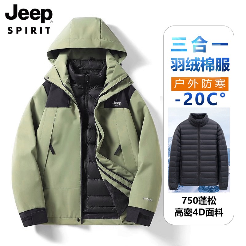 商品名称:JEEP吉普山系户外三合一冲锋夹克宽松大码三防外套男女同款情侣服