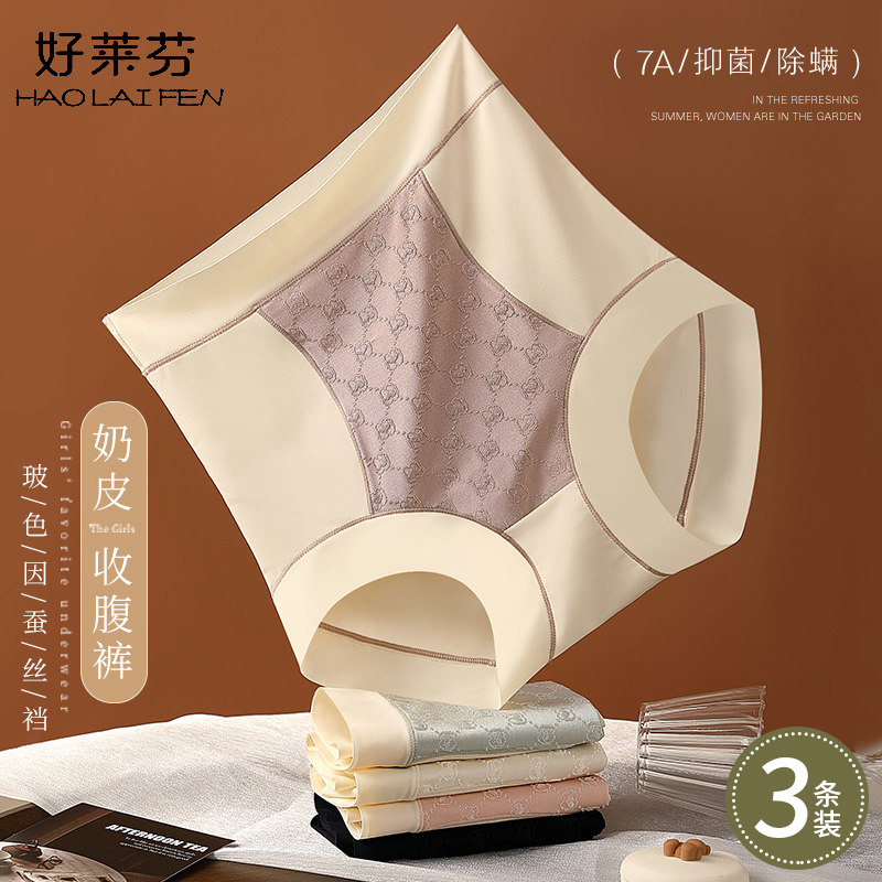 商品介绍:【3条装】蚕丝抗菌高腰内裤女收腹提臀