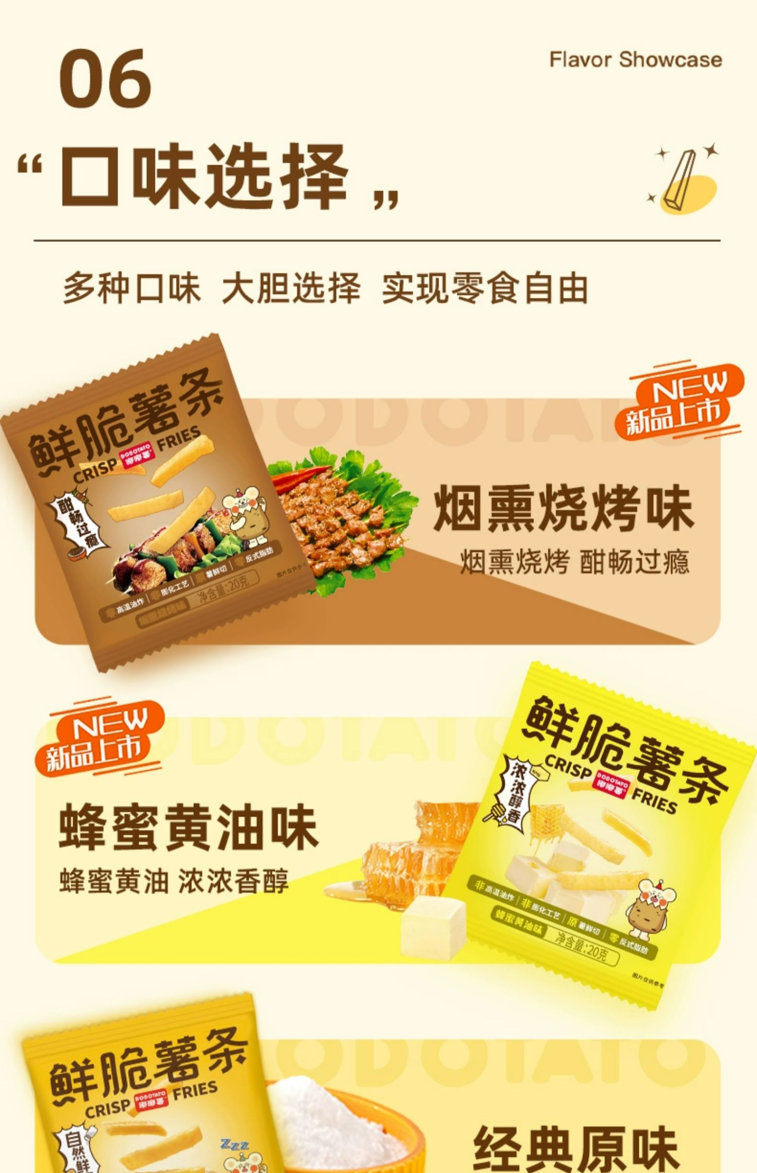 商品简介:嘟嘟薯原切薯条,蜂蜜黄油味休闲食品健康追剧零食番茄薯片小吃
