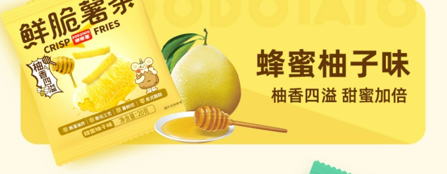 商品名称:嘟嘟薯原切薯条400g蜂蜜黄油味休闲食品健康追剧零食番茄薯片小吃