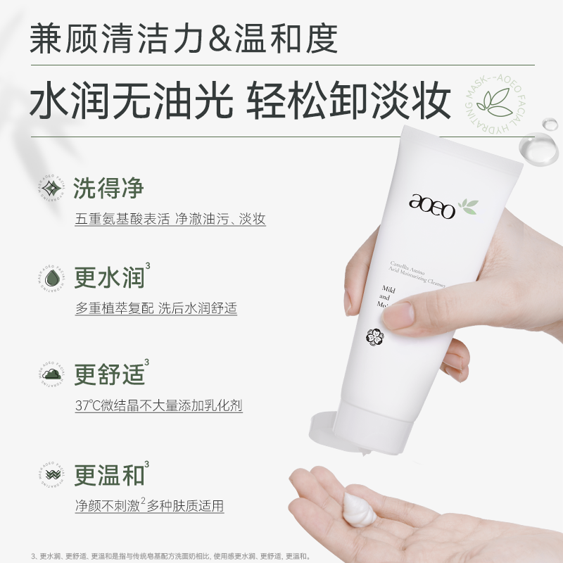 商品简介:拍立减20元,氨基酸温和亲肤洗面奶,蕴含山茶成分,调节泛红,干敏现象,密集润养,减缓肌肤老化,轻松带走油脂,深层净透更温和!【退货运费险】