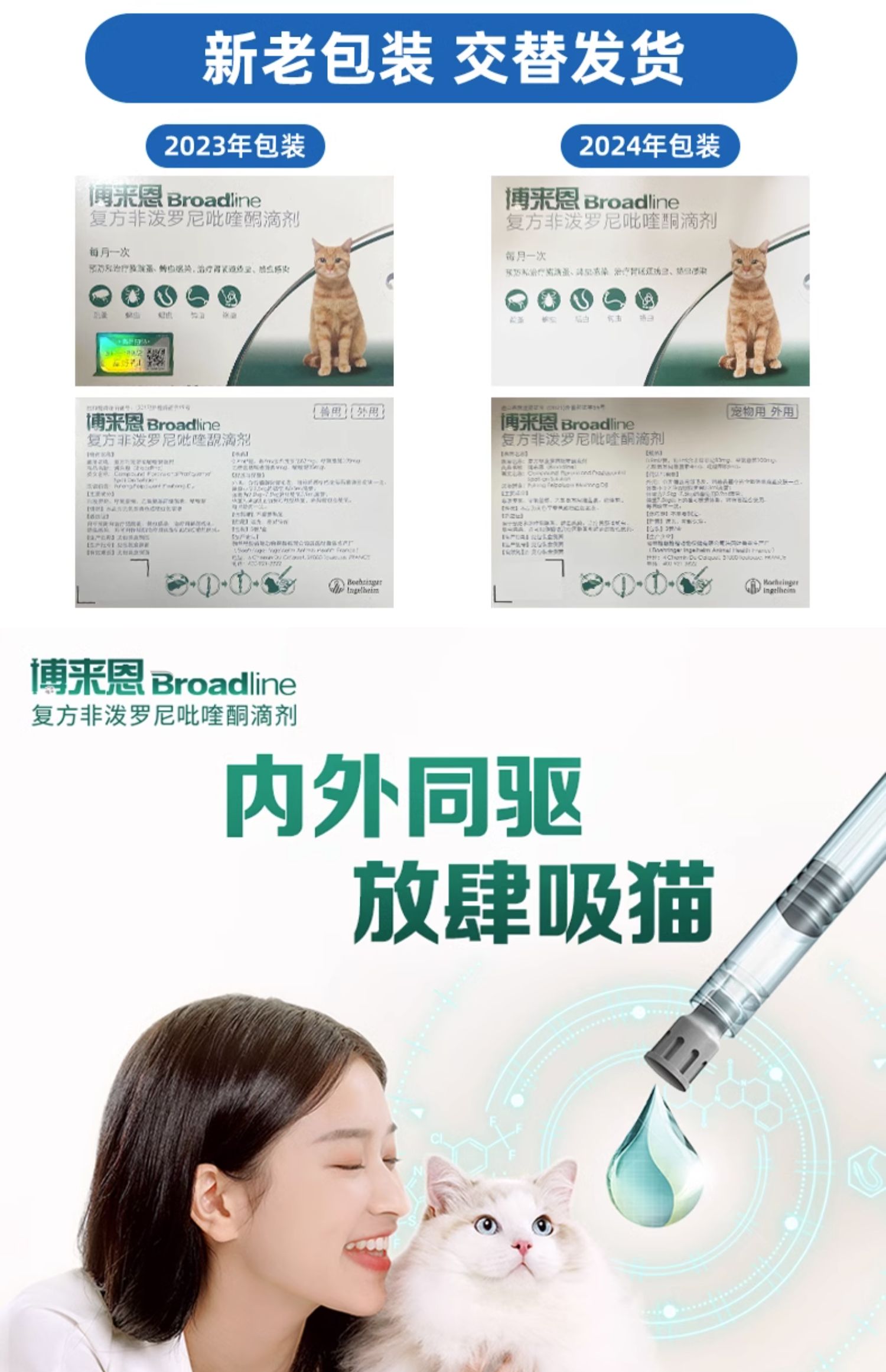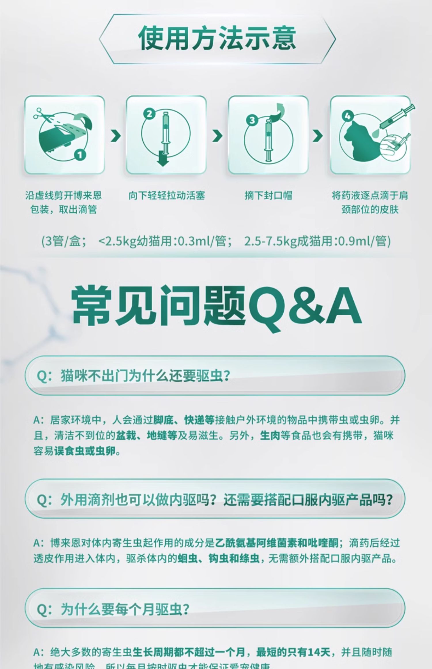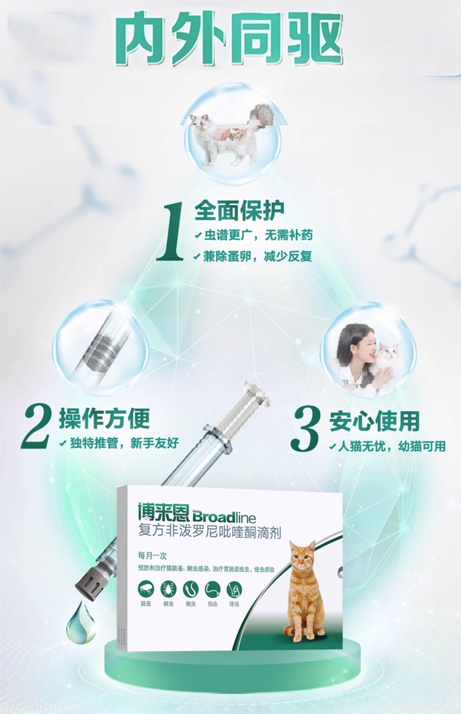 商品介绍:签到博来恩猫咪体内外驱虫药2盒*3支