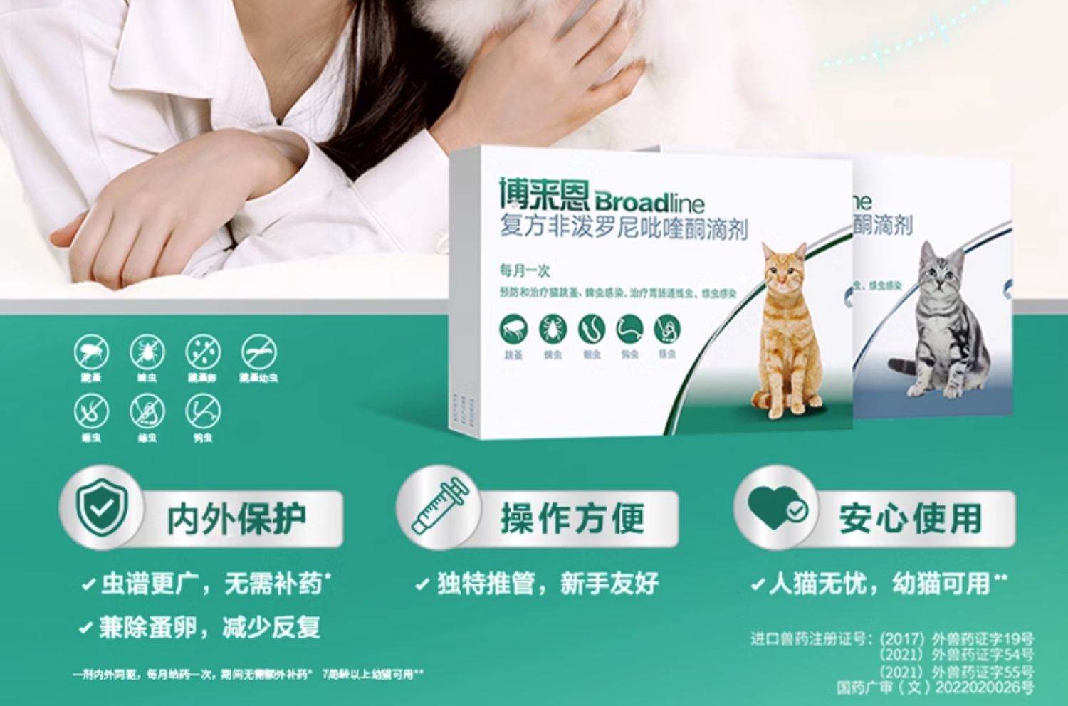 商品简介:跨店满减100元,签到叠加劵约329元!送猫咪拓展包+同款单支!博来恩猫咪体内外驱虫药3支*2盒!内外保护,虫谱更广,无需补药,兼除骚卵,减少反复!驱虫安心,人猫无忧!