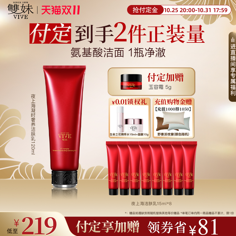 商品名称:【今晚20点付定】双妹夜上海凝时氨基酸洗面奶净采滋润洁面清洁