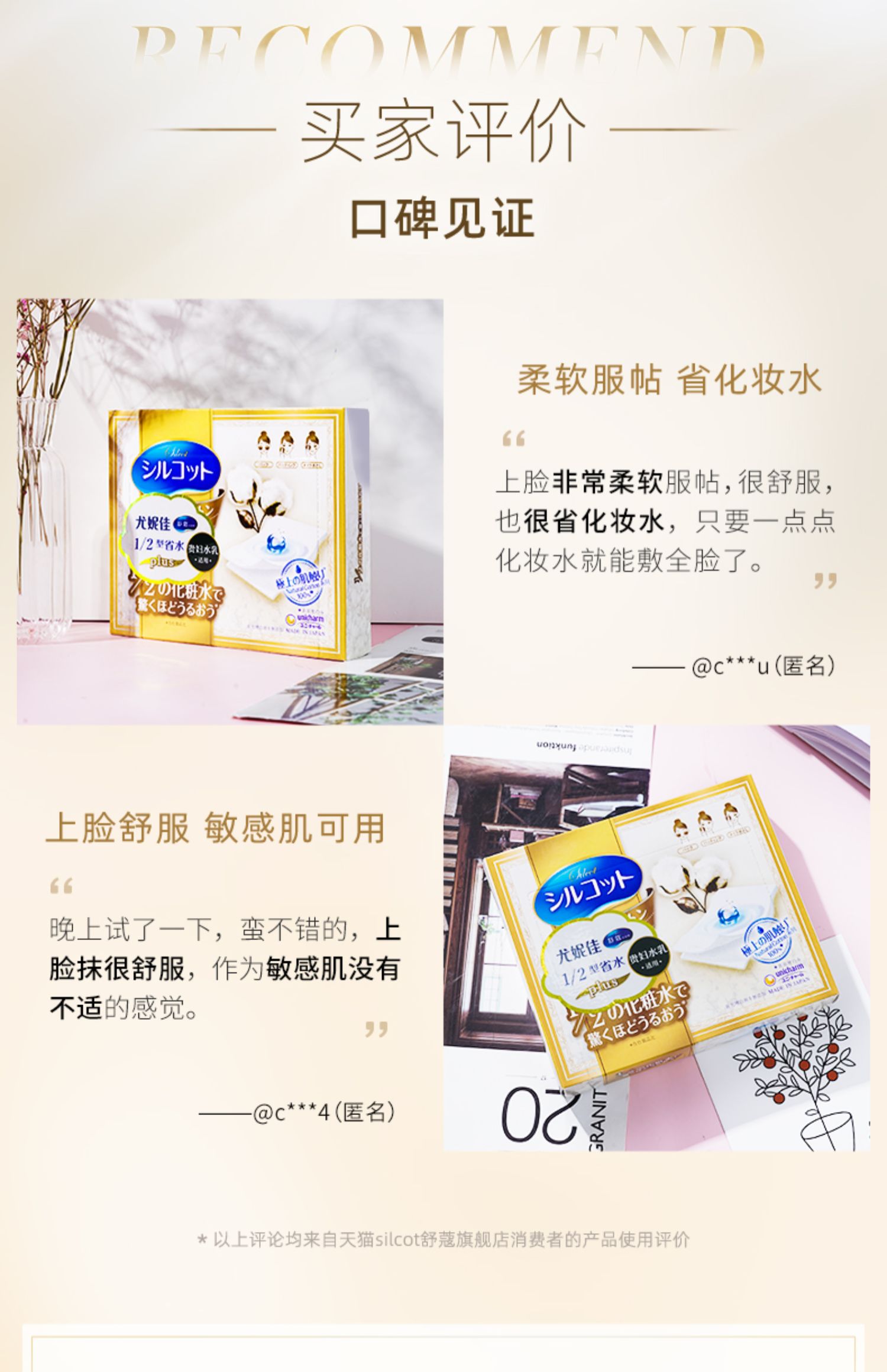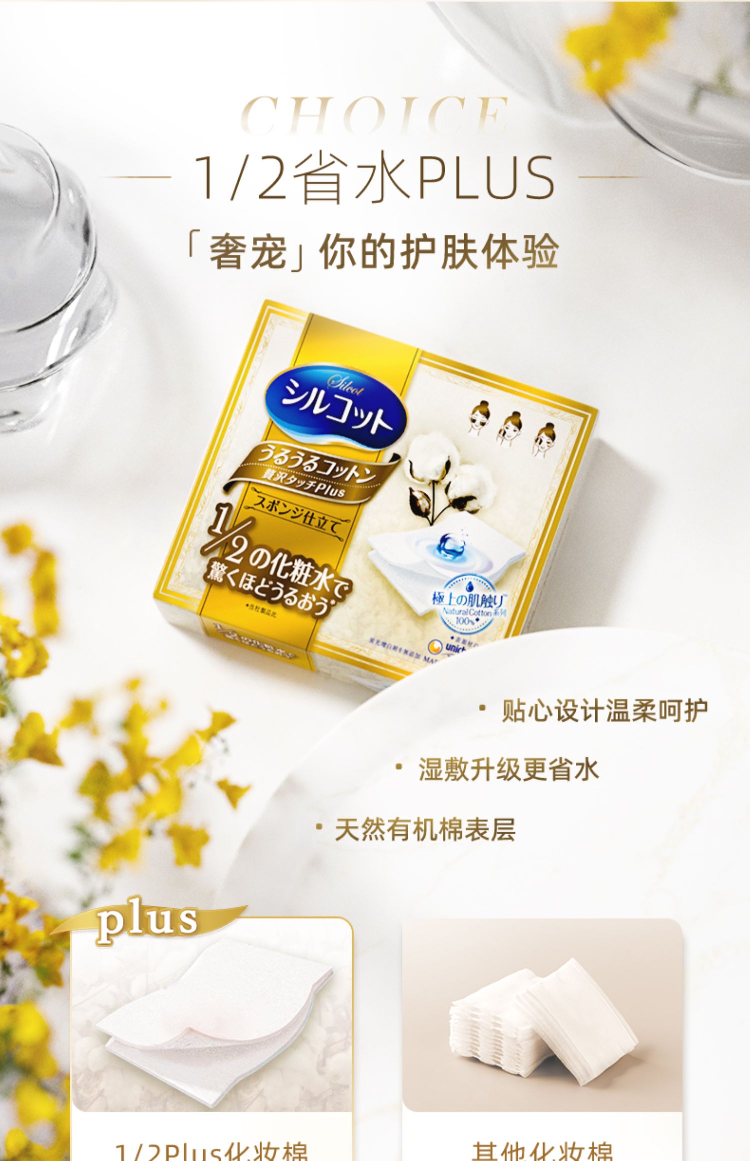 商品名称:尤妮佳舒蔻金盒 1/2省水Plus化妆棉水乳湿敷补水卸妆 36片*5盒