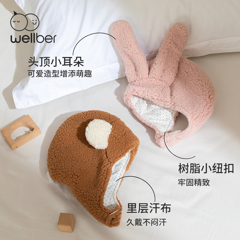 商品介绍:威尔贝鲁婴儿帽子秋款男童女童夹棉护耳帽