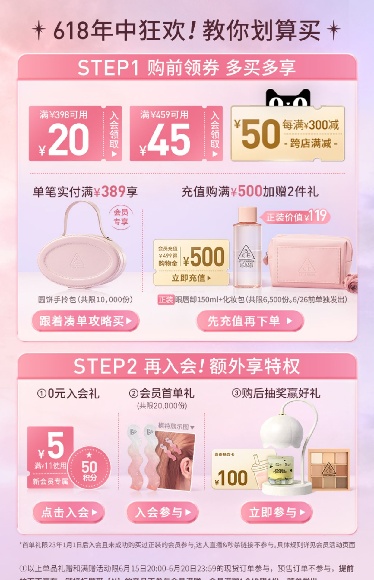 商品介绍:【44/支】3CE镜面/水光糖唇釉任选2件