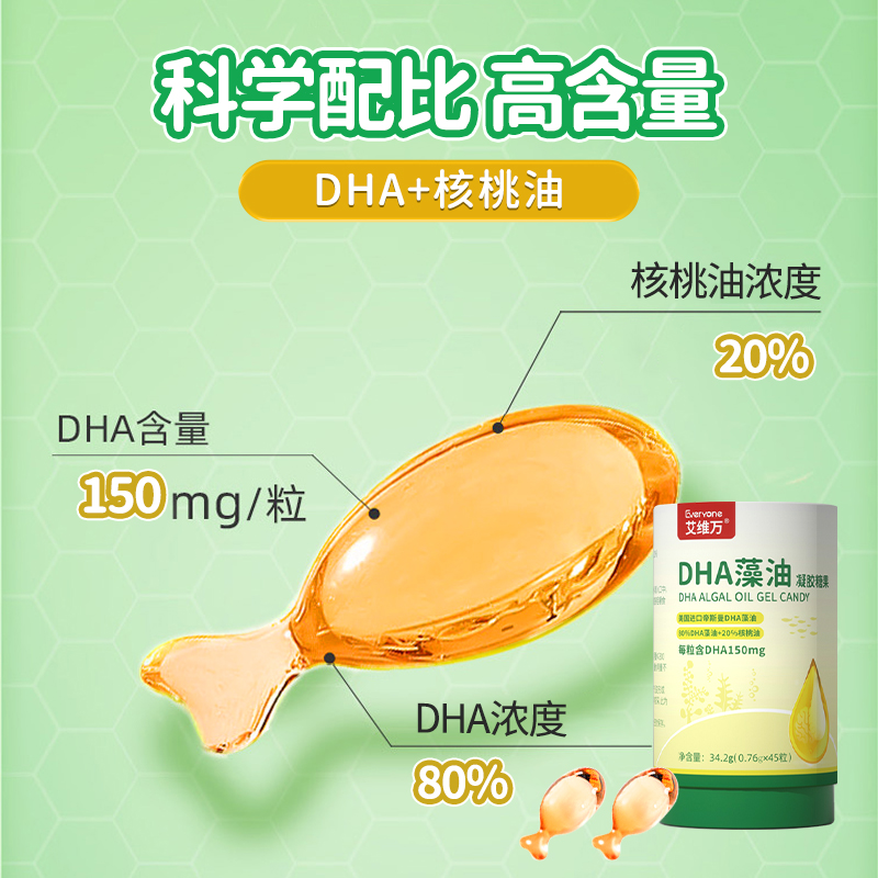 商品名称:艾维万美国进口帝斯曼dha藻油宝宝孕妇营养专用DHA凝胶糖果