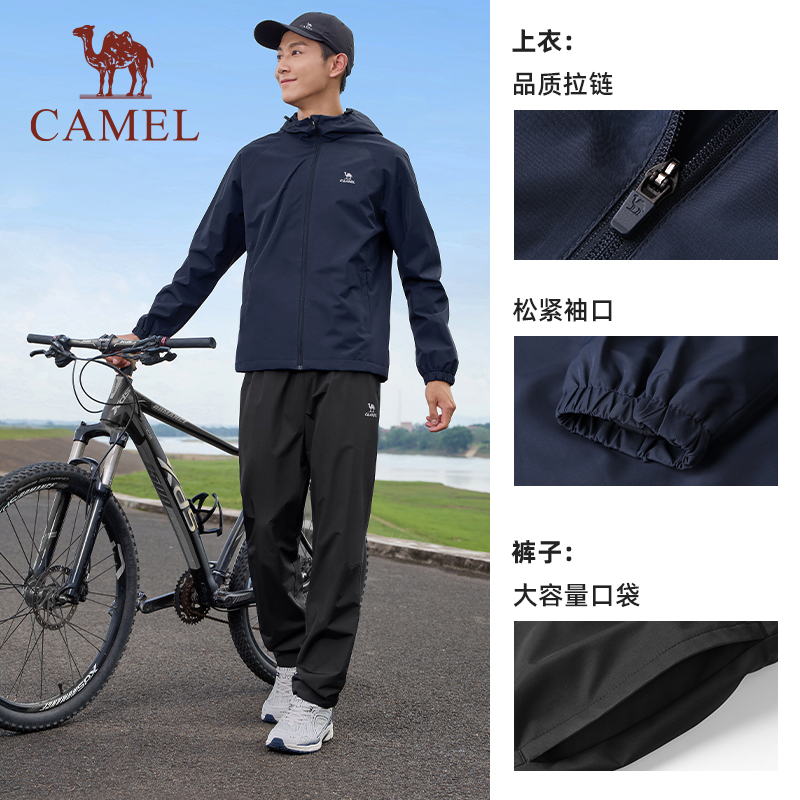 商品简介:骆驼官旗【运动套装】男女同款防水防风两件套,防泼拒污,防风锁温,秋冬天的运动套装~一套搞定!加绒保暖,防风防水,宽松版型,不挑身材,运动不束缚!不管是跑步、健身,还是休闲外出都可穿!