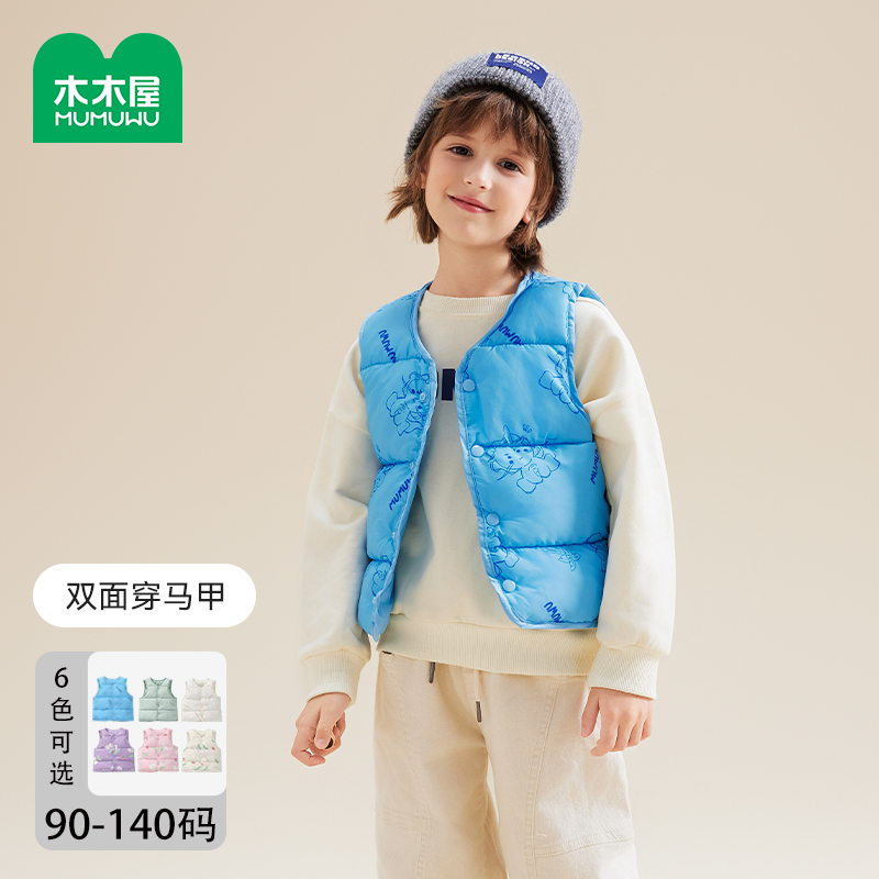 商品介绍:木木屋儿童印花双面穿马甲2件