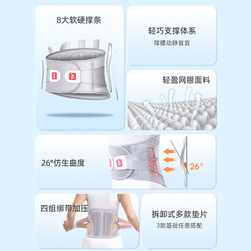 商品简介:维德医疗护腰带腰椎间盘突出治疗器矫正器,腰间盘劳损自发热腰托,全新升级可拆卸加宽铝板,医用级9大支撑发热