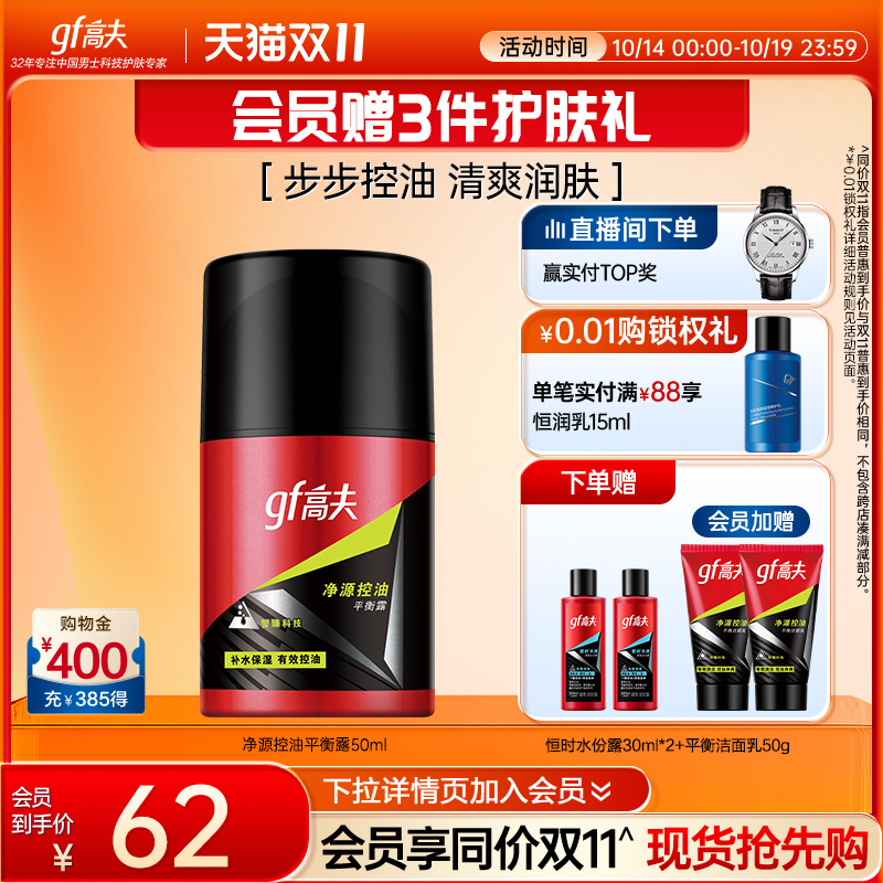 商品名称:【双11提前抢】高夫男士乳液净源控油平衡露补水保湿乳护肤套组