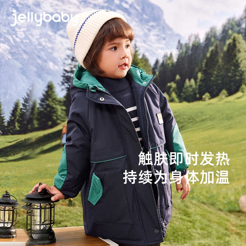 商品介绍:【jellybaby】夹棉连帽撞色棉服