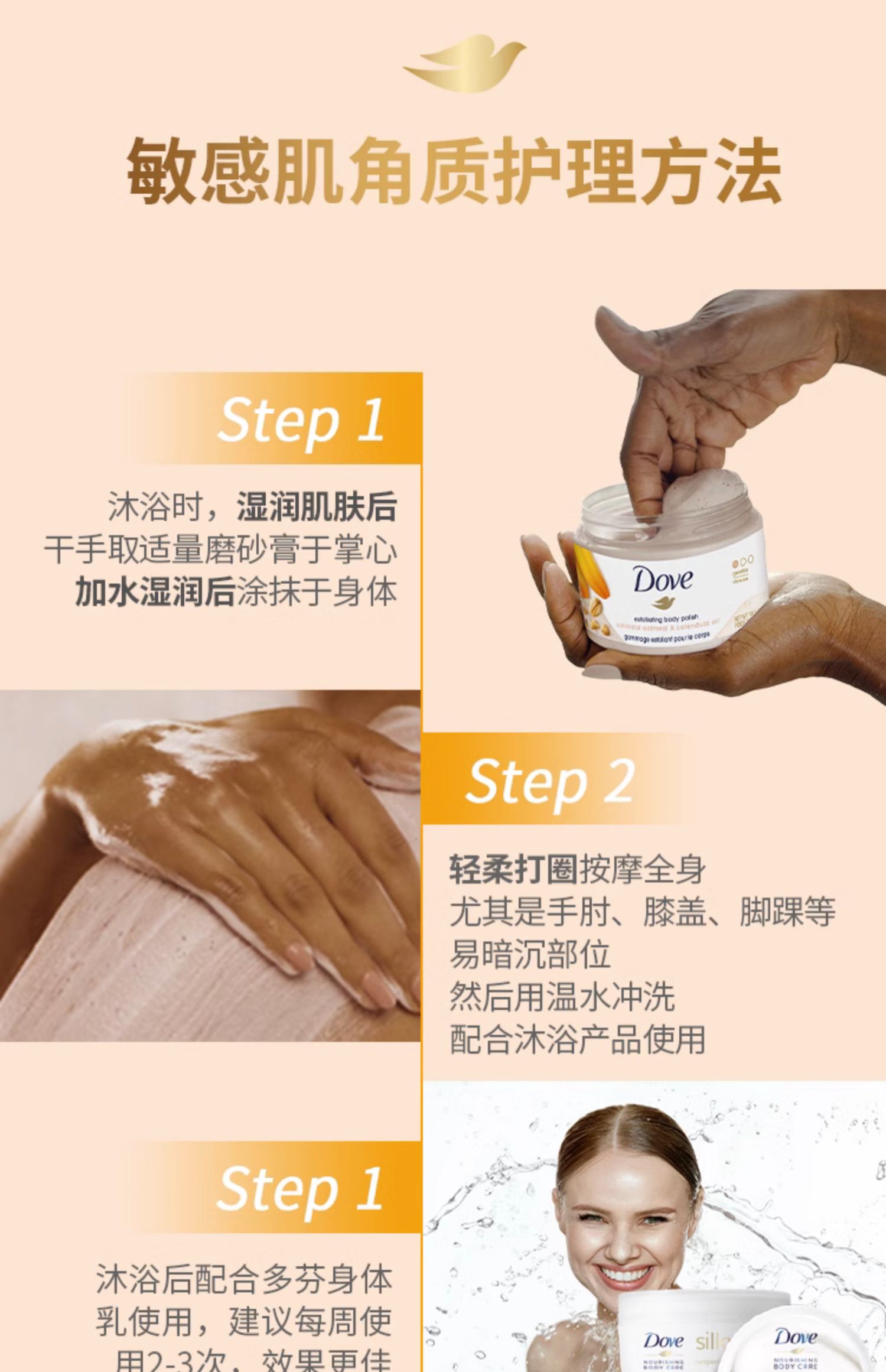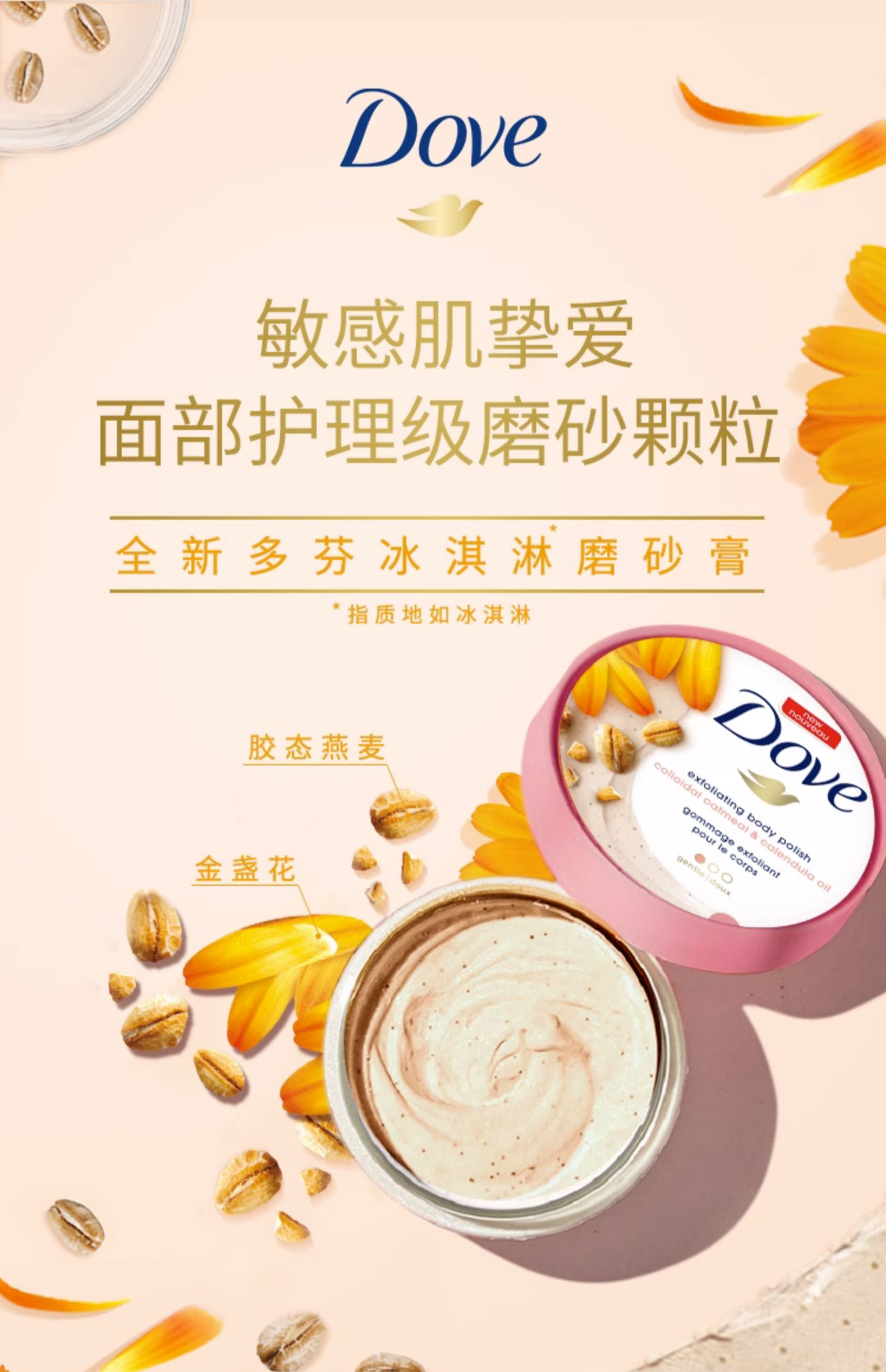 商品介绍:Dove多芬金盏花燕麦身体磨砂膏