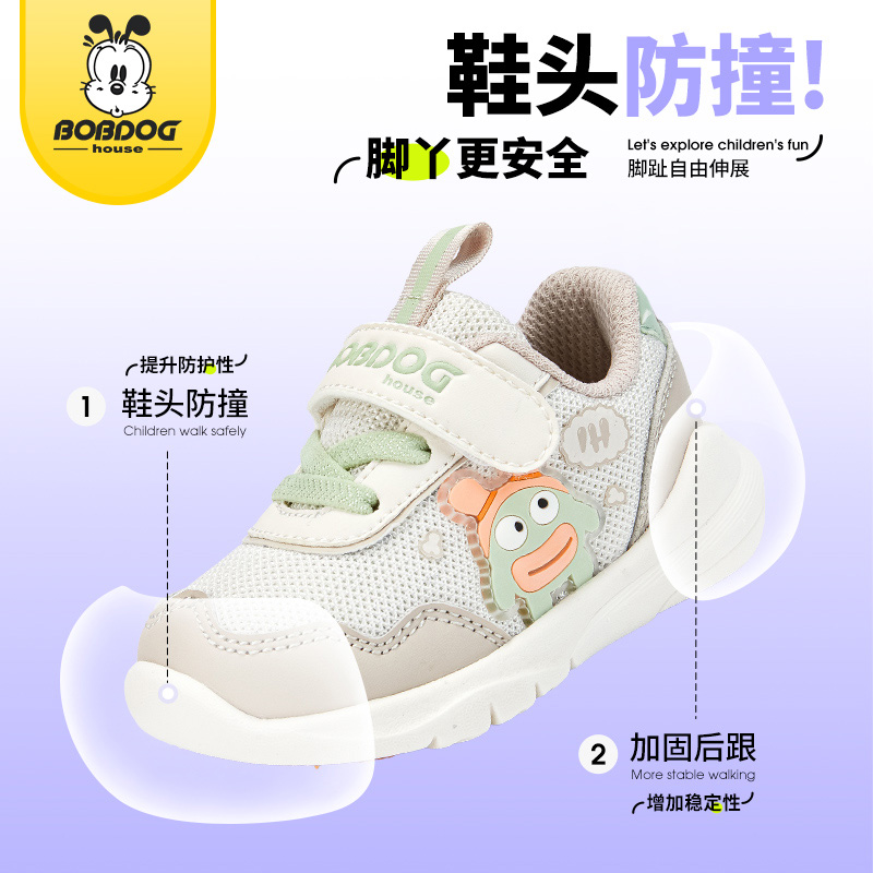 商品介绍:巴布豆2024新款儿童透气软底学步鞋