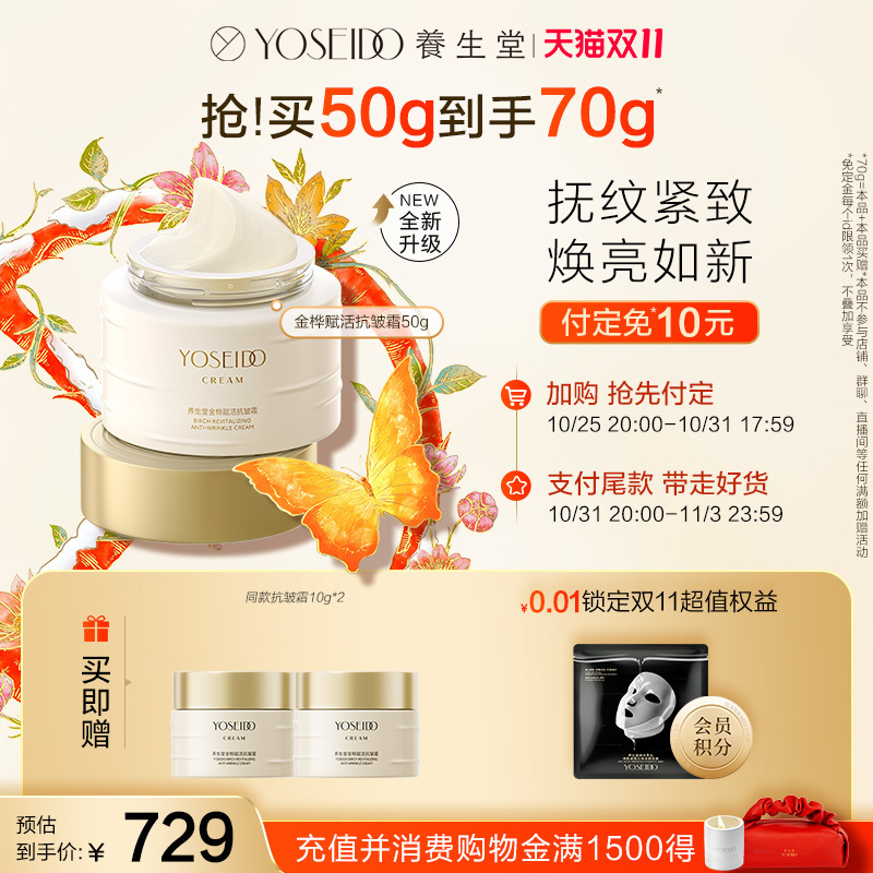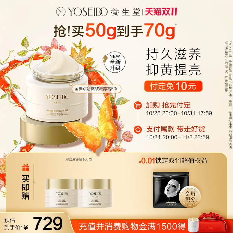 商品名称:【双11预售立即付定】养生堂金桦桦树汁抗皱霜紧致滋养面霜50g