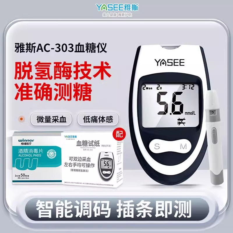 商品名称:雅斯AC-303血糖仪家用测试高精准医用测血糖的仪器测量仪试纸正品