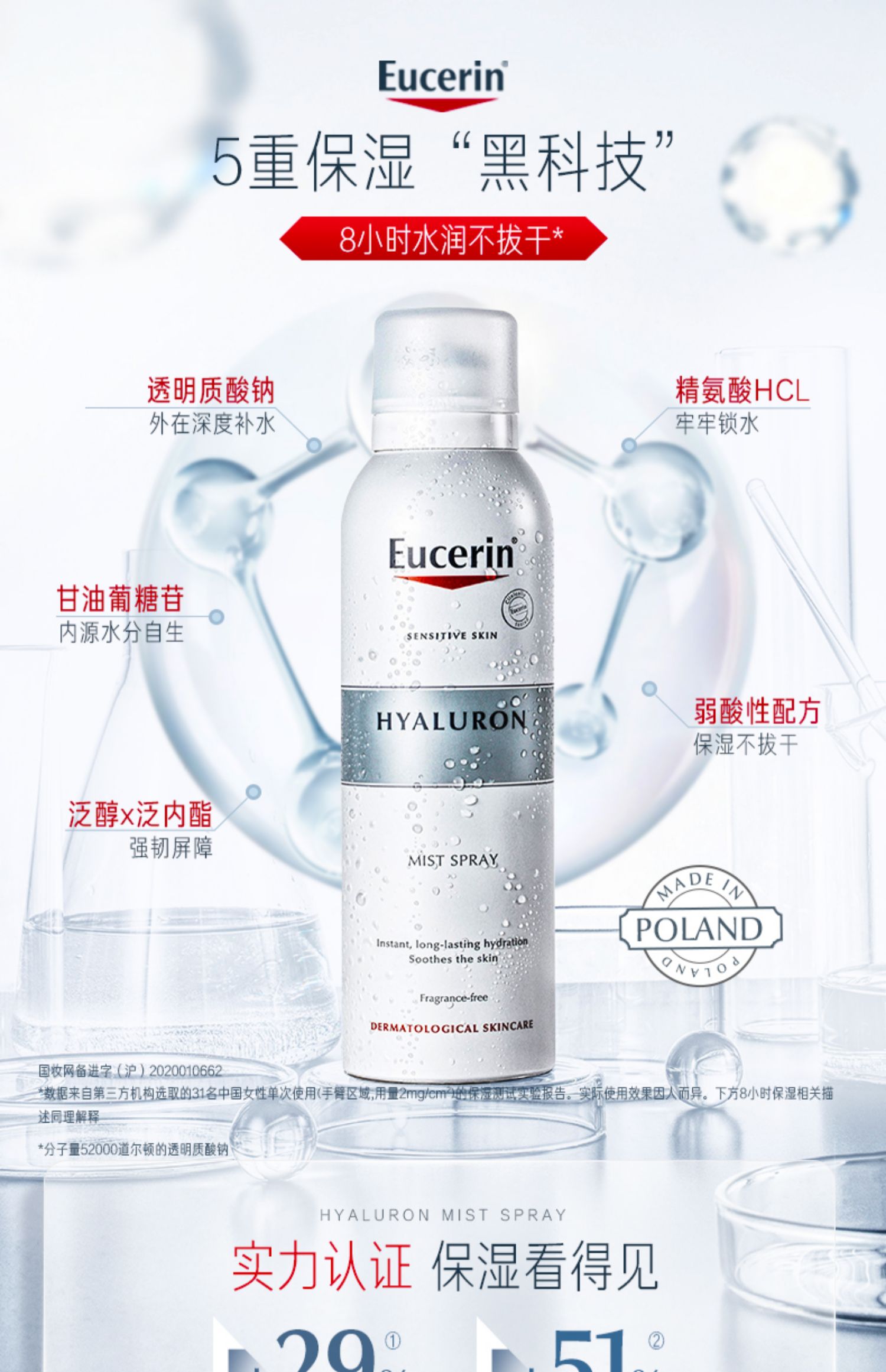 商品名称:Eucerin/优色林补水保湿喷雾150ml舒缓爽肤水敏感肌滋润